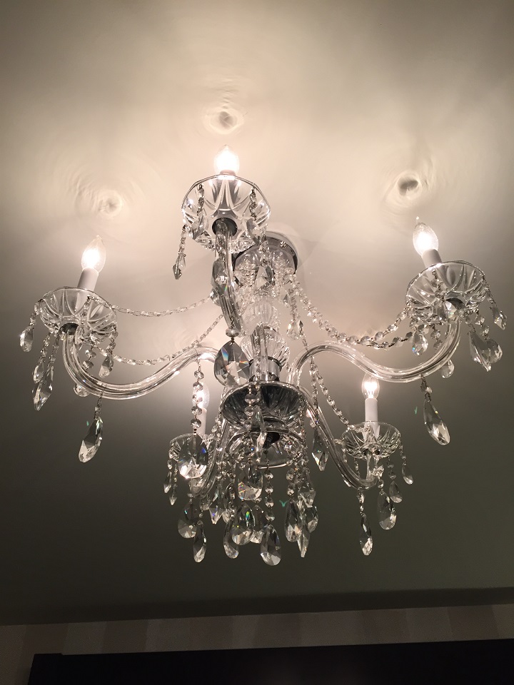 When I opened the door, I immediately saw the bed and chandelier! The room was tiny but for those of us who have sailed in the inside cabin, small is relative. The room utilized the space quiet well by removing bathroom wall and having a shelfing unit to showcase in room minibar snacks (reasonably priced) and a good closet space. The tv is mounted above the no view window and easy to control from the bed (your only seating option). It’s a good size for one, two might be snug.