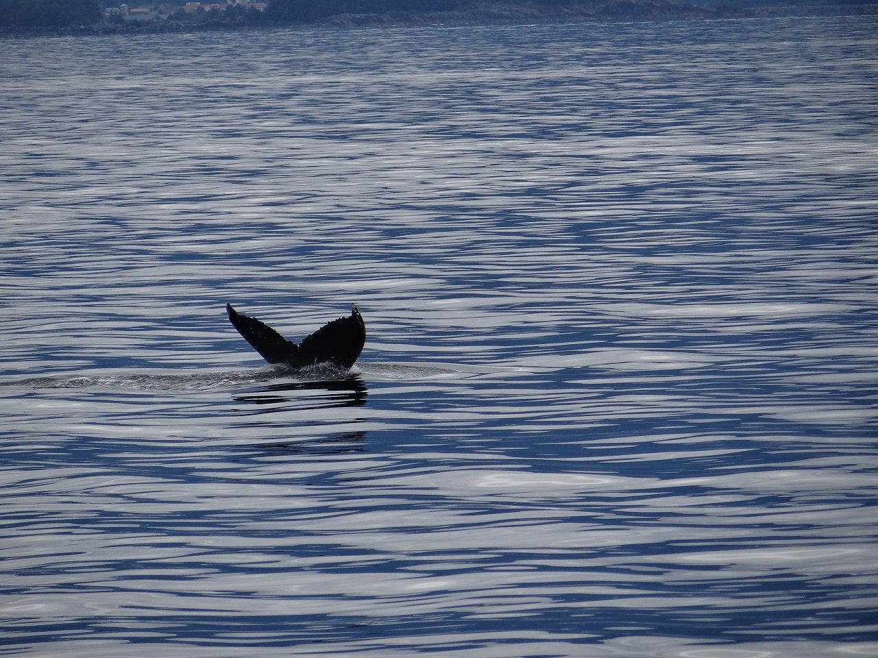 As we exited the inlet into the larger water we saw a whale (or the captain and animal spotter staff member saw the whale). For me, I always see a fin and rarely a tail and never my “free willy” or “national geographic” whale that jumps out of the water. This day we chased both a fin and a tail (on the ship at dinner later that night we would see a whale jumping in the distance following the ship). I’m pretty impressed that I got the tail photo without having a fancy camera lens like so many on the boat.