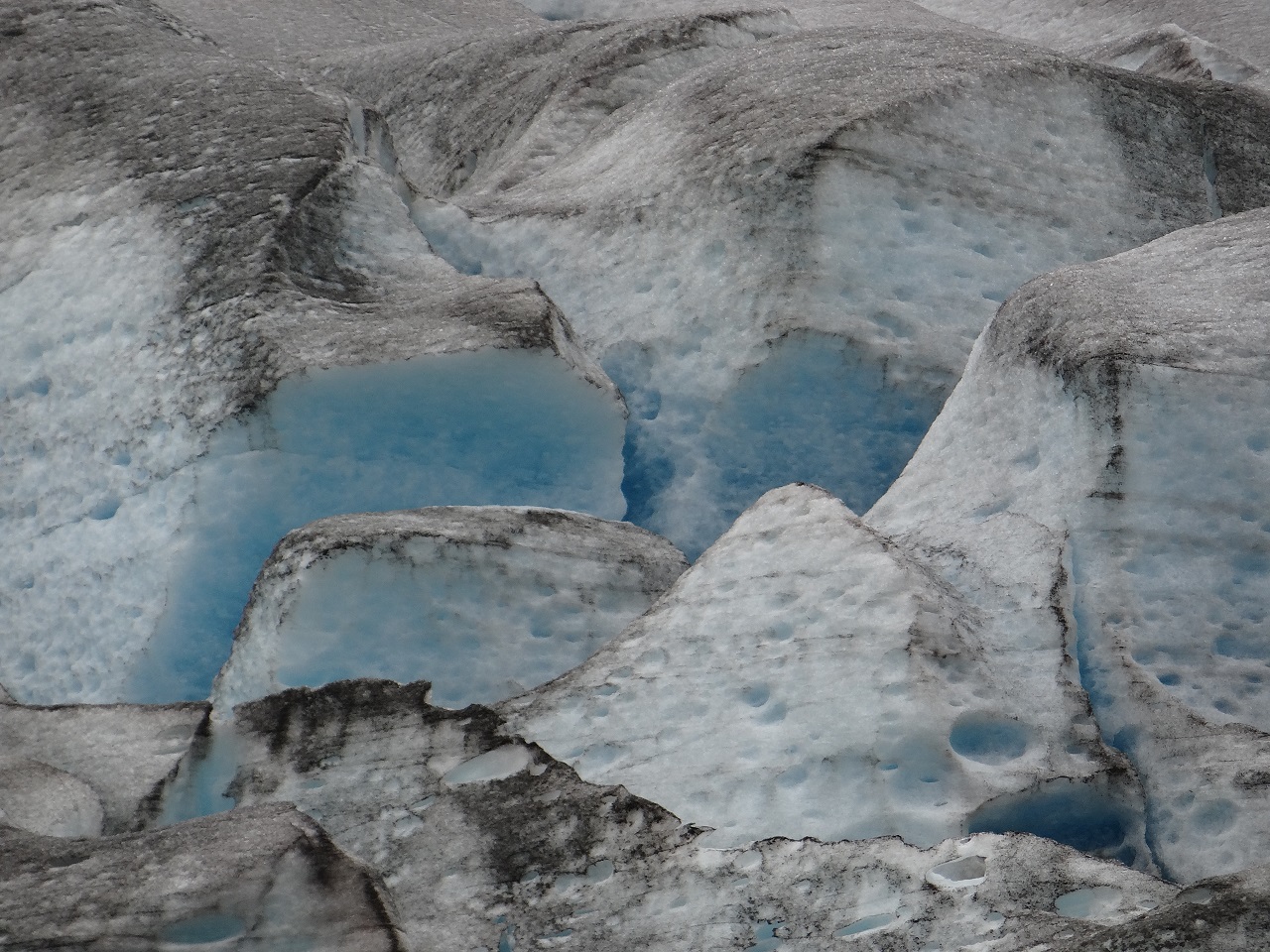 Our driver/guide would walk us around the glacier area to show us different parts. It could have been a scene from a movie as explorers land on the unfamiliar shores to go wander about. We hiked a bit uphill (wear good shoes) and then the three groups walked through the waters (one girl carried her mother who didn’t wear boots).