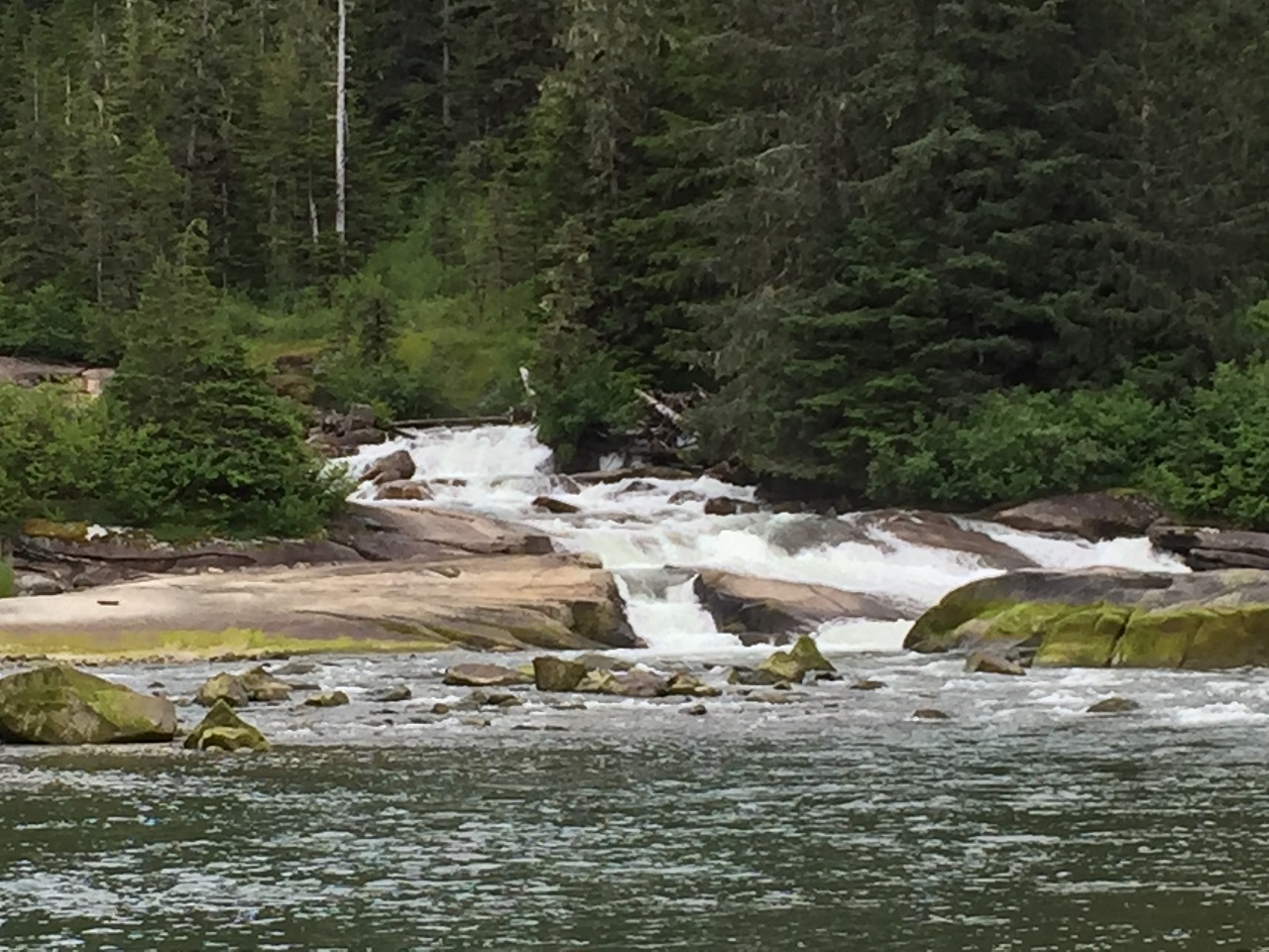 The four hour tour began with meeting our shuttle driver in port to transport us to the dock to board a boat ride around the forest and lake of Juneau. With multiple tours that day, the one hour cloud covered ride was full of information as we all hoped the rain would go away.