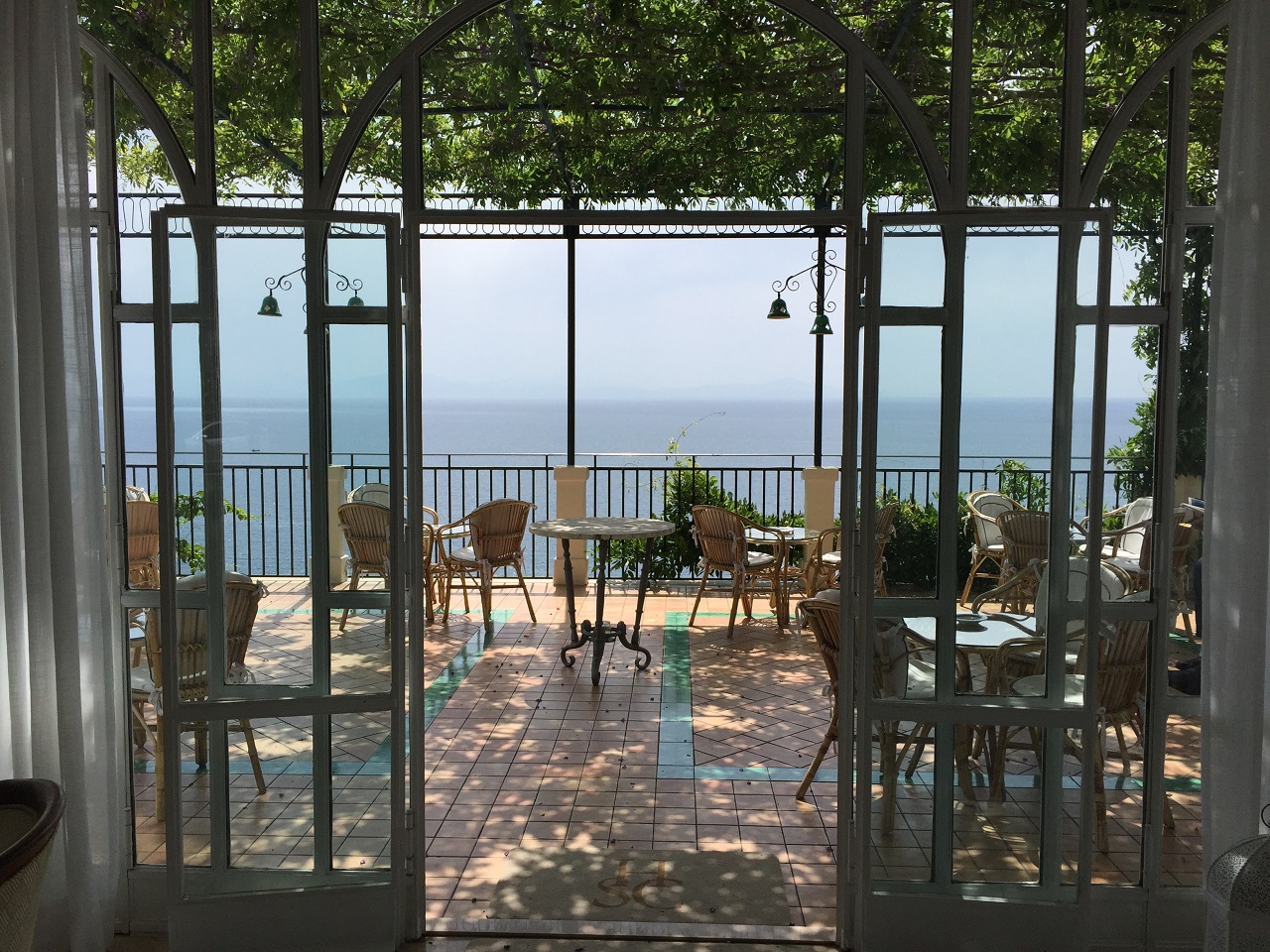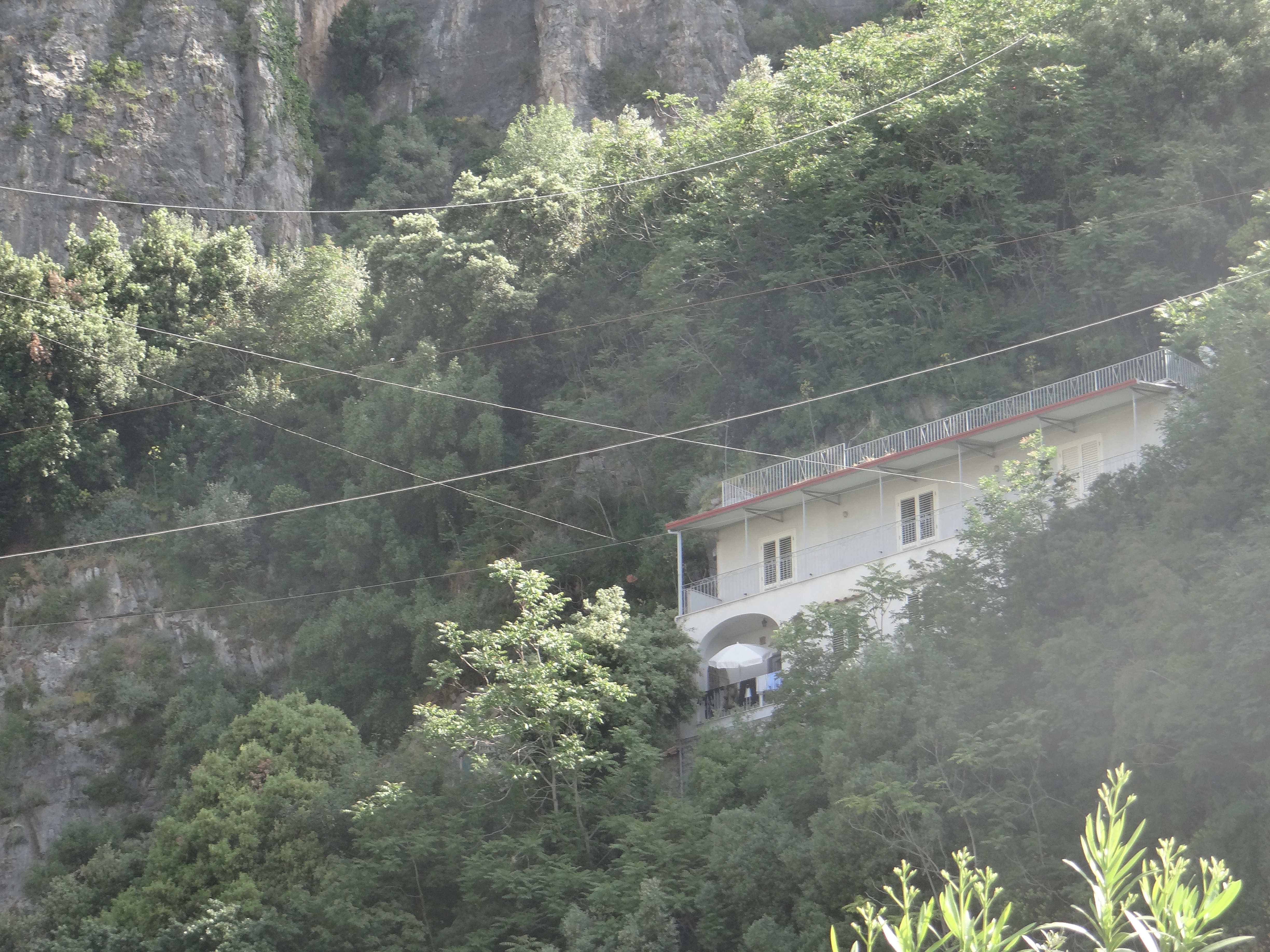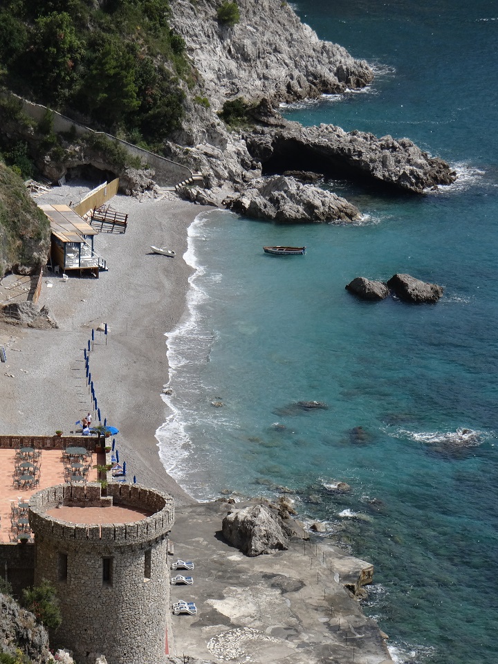 During the drive, I had one bathroom stop at the fancy five star hotel, Hotel Santa Caterina (which has hosted celebrities, dignitaries and political figures) – I had to pretend to be interested in the hotel to ask for a brochure and then ask where the bathroom was (if only the Italians would just let me use the bathroom instead of the pretense or requirement to buy something). I then asked if I can take a photo or two (lamenting my good camera left in the van). Generally the main part of the hotel is at street level then the rooms, pool and beach are located below. This is the fancy, five star view of the Amalfi Coast.
