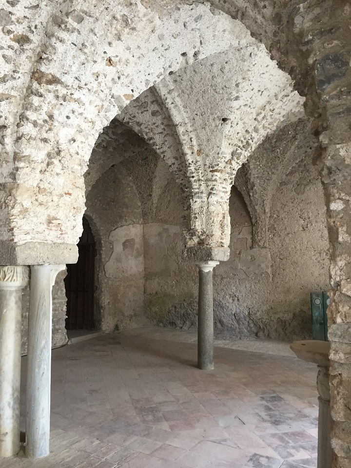In Ravello, I had an hour to explore and Marcello told me to go to Villa Rufolo, an 11th century villa. The entrance fee was €5.00. Walking through the serene gardens to the villa and then beyond to the Amalfi Coast view was really relaxing. It wasn’t as crowded as the town square was with tourists in the church, at the cafes and sitting around waiting for their pickup to return to the ships. I had time to sit on benches and look at trees and views that many literary folks had done eons before me. Relaxing in beauty and history isn’t the worst way to spend the day.