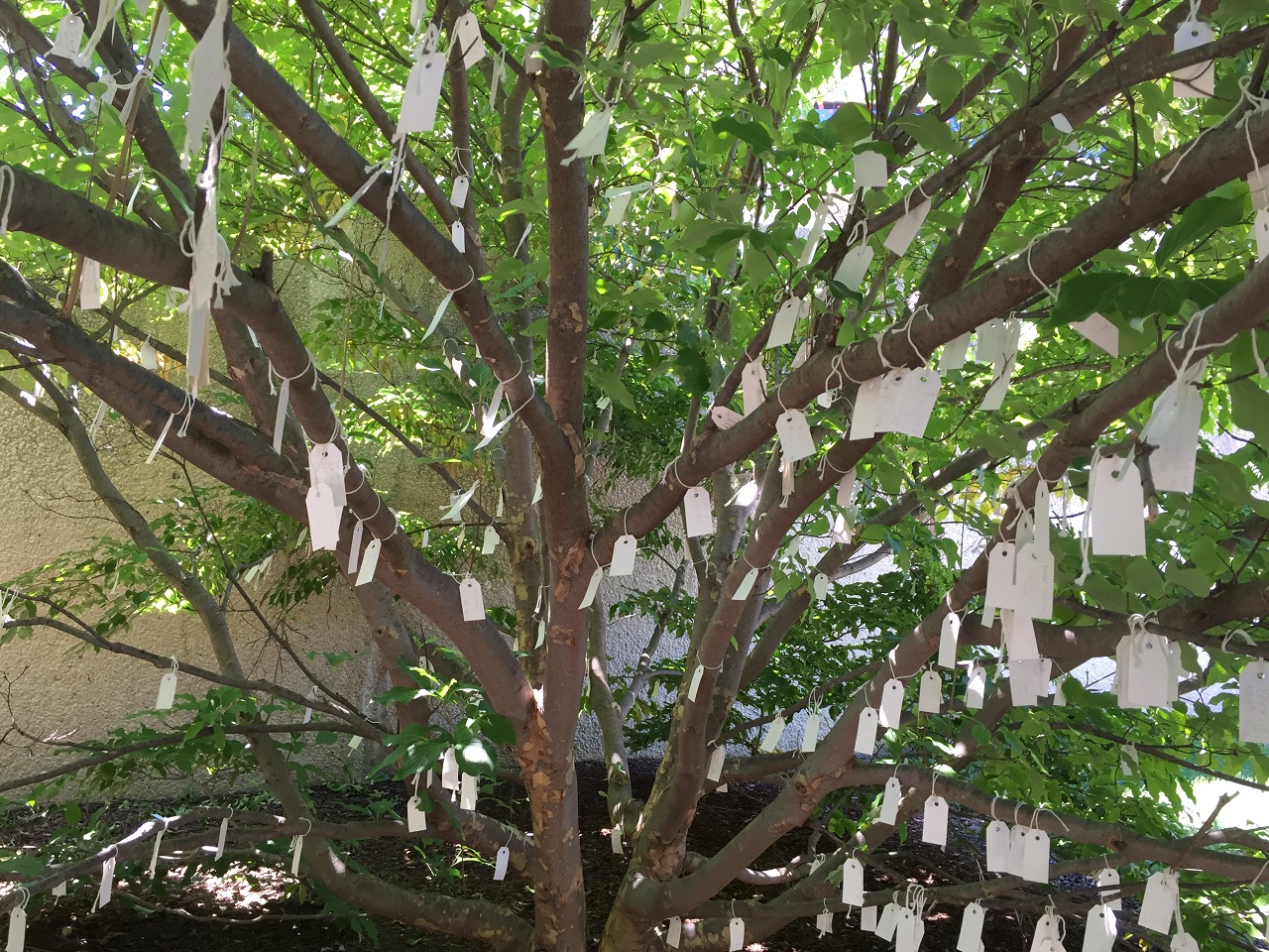 Wishes of world peace, of sibling peace and political peace. Wishes for pots of gold and lottery wins. Wishes for stuffed animals and candy and for her little brother to stop being annoying. Wishes for happy marriages, graduations, new jobs, new relationships and new lives. Wishes for love, happiness and smiles. Wishes for good health and vacations that never end. Everyone that walked by the tree stopped to write down a wish.