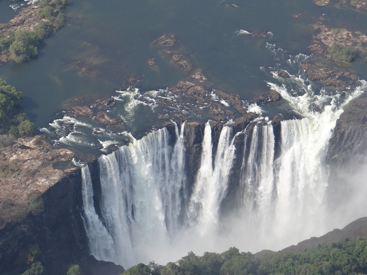 The staff at The Elephant Camp drove me to Victoria Falls and gave me about two hours to explore (it was enough time given that it was low water season September and not crowded) before they would pick me up to bring me back to the property for my amazing dinner (the food was fantastic). The next day, I would ride a helicopter over Victoria Falls before enjoying afternoon tea at the historic 1904 built Victoria Falls Hotel on the way to many sundowners (happy hour drinks) on the Zambezi River sunset cruise.