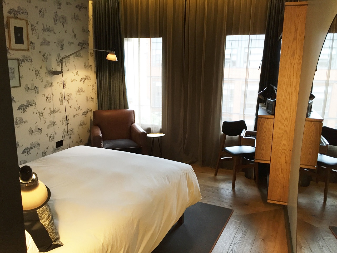 I had previously read that the lobby is teeming night and day with guests and non-guests working at the communal tables, couches, bar and restaurant (free Wi-Fi!). When I arrived near 1 p.m. on a Saturday, the lobby/bar/restaurant area was full of life of all ages not surprisingly attached to their phones and Macbooks. You might mistake it for an Apple store walking on the street if it wasn’t for the warm woods and designer touches. I thought I would feel out of place for my age but I happily saw people of all ages which was a nice mix.