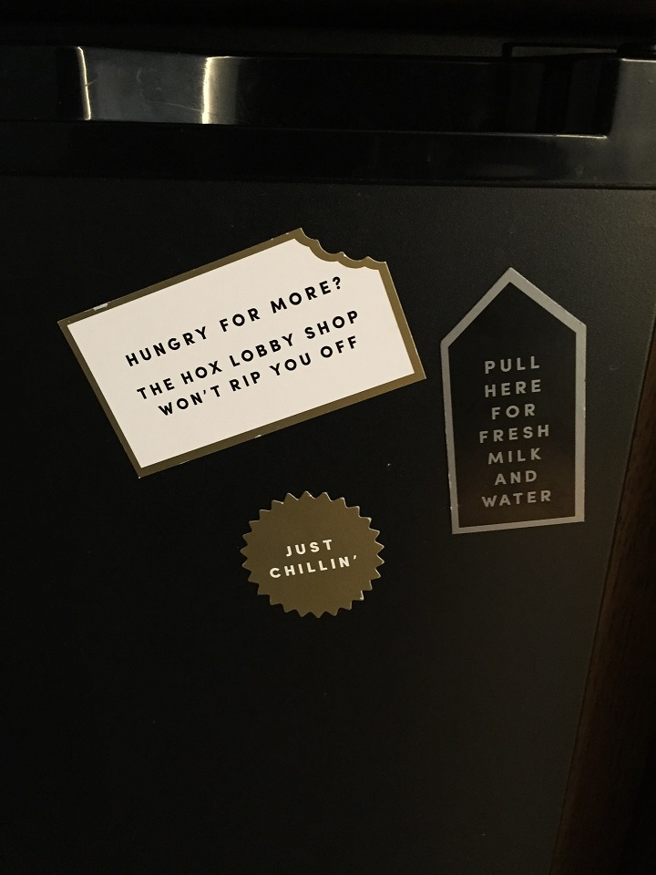 Yes, there is more than the free (no password required) Wi-Fi. The in room refrigerator is stocked with two bottles of water, called Flat Matt, and a container of fresh milk for your coffee/tea. If you need more water, just ask the front desk. I didn’t have to pay for bottled water all weekend that was lovely. Flat Matt is my new favorite water amenity (sorry Fred Water at Kimpton, you’ve been replaced with a new water man). The hotel also provides one hour of free local and/or international calls (in case you don’t have international mobile coverage, you can call home without worry). There’s also a calendar of music and lifestyle events happening at the hotel throughout the month.