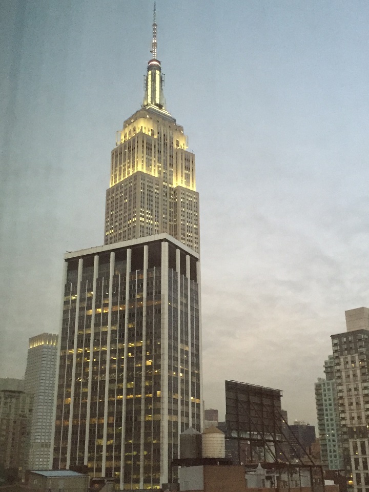 But it was the floor to ceiling windows that called to me. Remember I get the worst views (or no view at all) and I could see through the sheers that my crappy view streak was coming to an end. I drew back the curtains and sheers to see the Empire State Building which was really cool. I already liked the new, crisp, modern hotel design and layout and here I had a view too!