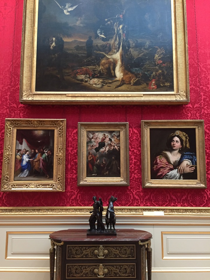 I knew when my tour around the collection was complete when I ended up in the original room of blue wallpaper. In some ways, I was reminded of how The Barnes Collection in Philadelphia is curated with many art pieces on the walls causing the visitor to linger and try to find a common thread/theme in the art. One wall had ten or more paintings above a chair or table – it was spectacular. Another wall was full of women. Another wall had hunting and animal paintings. So there were some themes.