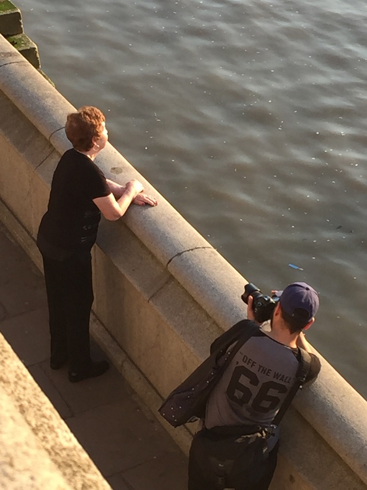 We walked down the stairs to the river walk for lovely views of Big Ben and Parliament. Of course, the day of our shoot was the hottest September day in over sixty years. The sun was still strong at 6 p.m. While we did our shoot, along walked a real model shooting a commercial (nothing like that to remind you that you are not a professional model) – she stuck out of the crowd as she was wearing a winter coat and surrounded by three camera men as she walked. The rest of London walked by as if she was invisible.