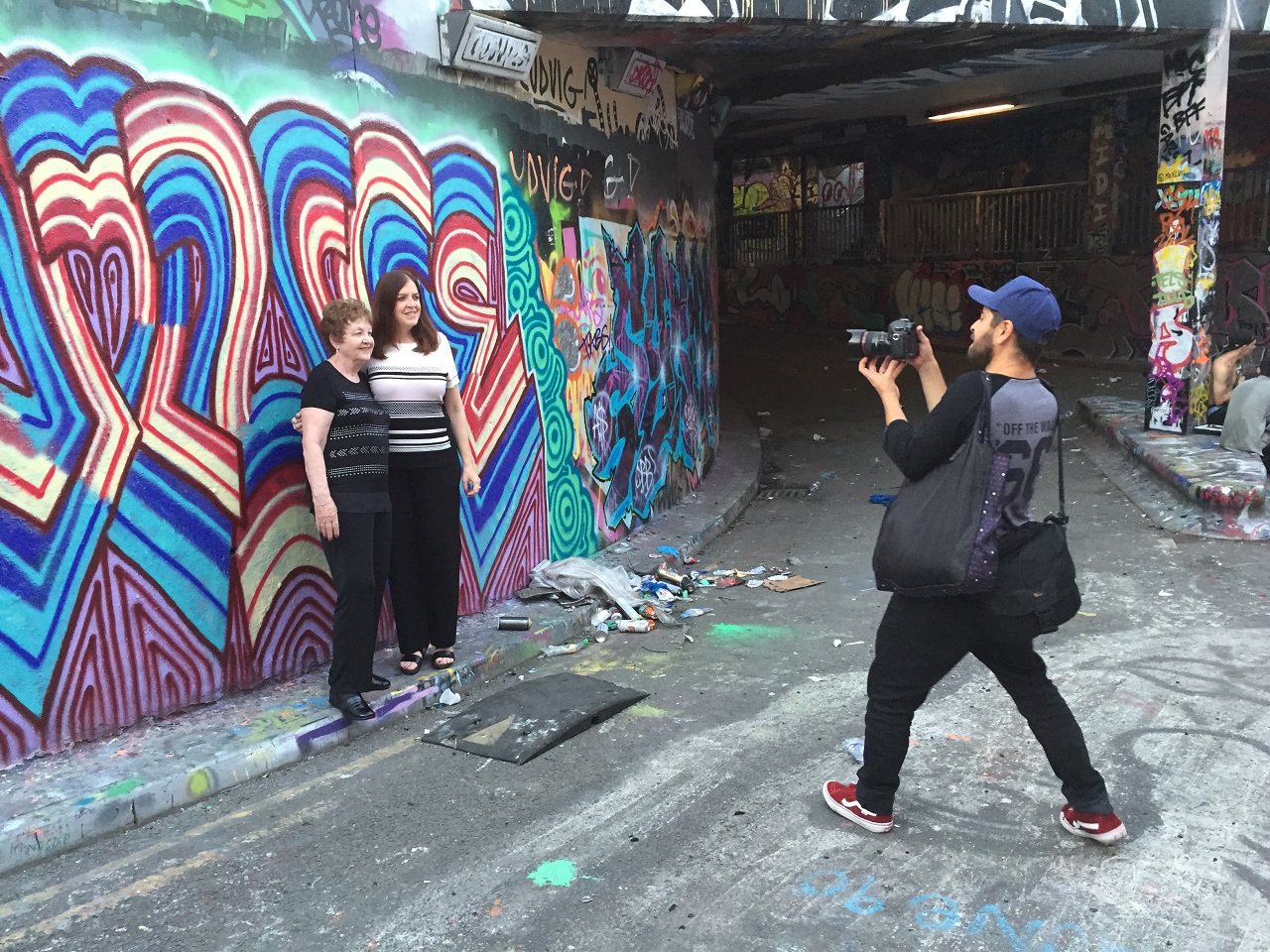Since this was Mom’s first trip to London, I decided to split our one hour photo shoot with Classic London (Big Ben & Parliament) with present day London via the Street Art. I also chose Hector from the list of photographers in London. His portfolio showed a mother/daughter picture and he had a few older people (some portfolios are engagements, families, romantic couples focused) and street art photos. We arranged to meet on the Westminster Bridge near Big Ben and the London Eye.