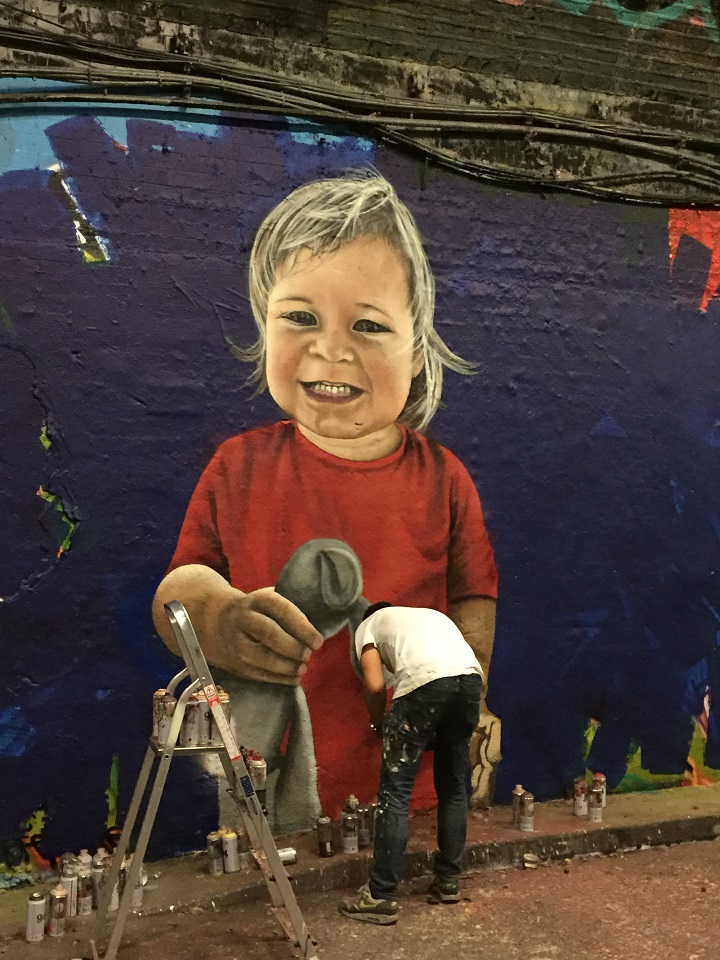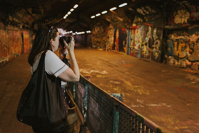 The Graffiti tunnel was interesting as it was more tagging with mixes of street art in between. It was definitely gritty. While Hector looked for interesting backgrounds, my friend took photos with my phone (I would take photos with my camera after the shoot was over). We got to see an artist working on his space on the wall – he was painting his young niece.