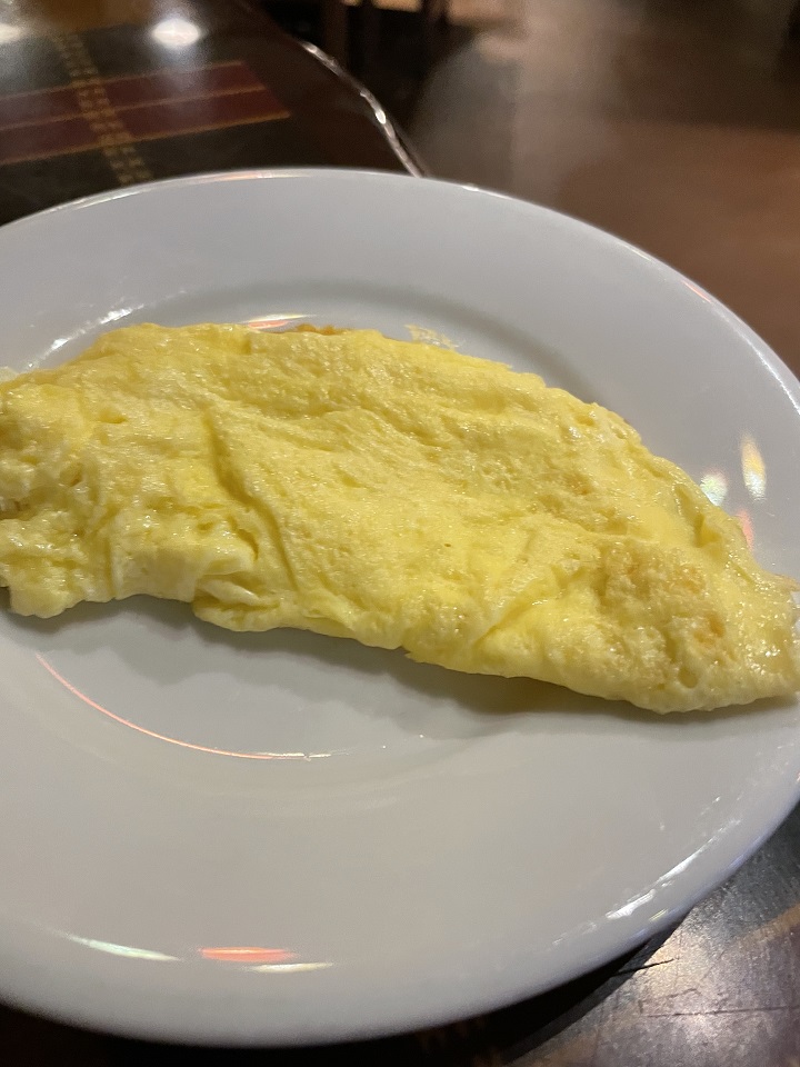 The server was quick to arrive and offer the special juice concoction – a very sweet combination. I asked about ordering eggs and she said I would do that in the buffet line at the kitchen station. I walked to the buffet and started looking at my options. I added asparagus and potatoes to my plate and then walked to the eggs station to order fried eggs. I was then told “they don’t do fried eggs, only omelets”. What? More confusion on my part. I should have left to be honest but I didn’t have time to go elsewhere before I had to leave for the airport. I asked the server why I couldn’t get fried eggs and it had something to do with the pandemic and runny eggs? No idea how fried eggs were a health hazard so she recommended me ordering a plain omelet – basically scrambled eggs. Those arrived quickly and I added them to the plate I built.