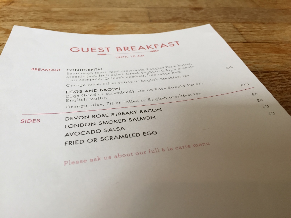 I was clearly disappointed and felt duped by the photos on the My Bloomsbury website and HotelTonight – the manager was available in the morning so after breakfast I asked to speak with her to address my concerns. Having spent over twenty years buying travel and doing hotel site visits, I wanted to talk travel with her and see what happened with my reservation – was I given the sad pink room because of HotelTonight (they don’t guarantee room type but my issue wasn’t room category)? Or was the pink room the normal?