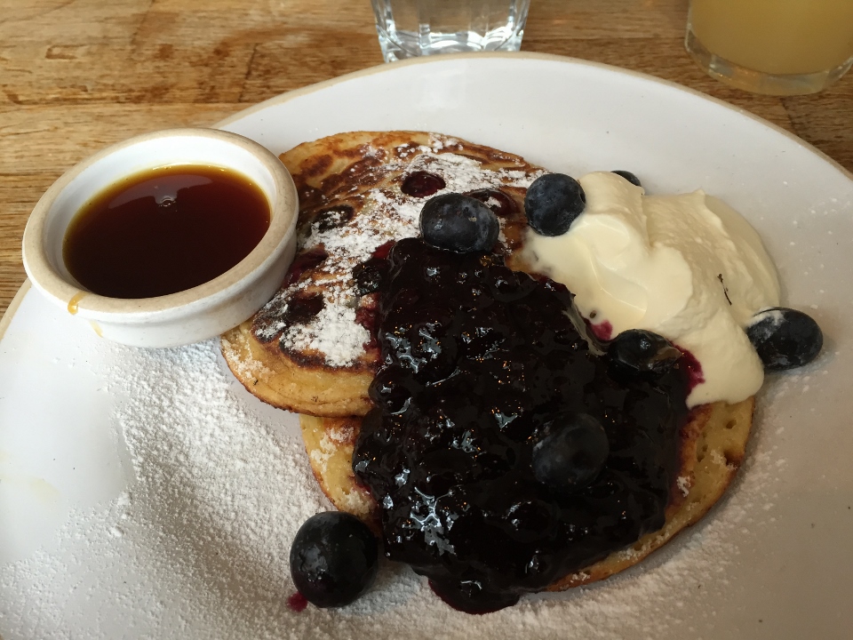 The on site food provider is Gail’s Artisan Bakery, a local chain throughout London that I’ve frequented many times as I love their cookies. I was quickly seated for breakfast and given two menus – one for hotel guest and one for general diners. Having a yen for pancakes I chose the ala carte blueberry pancakes, which at first weren’t fully cooked but the second plate was fine (not sure why pancakes are such a problem in London). Next visite, I’d order the popular eggs with fresh bread or avocado toast that the tables around me were enjoying.