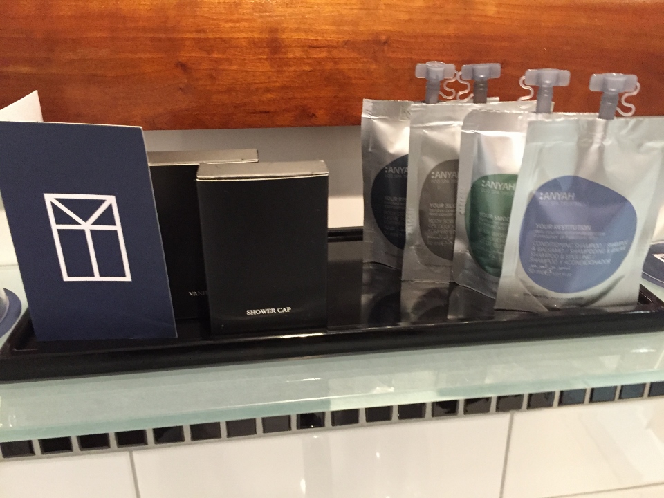 The bathroom was much better than expected from the pink room. It looked as if was just updated but then I saw the black mark in the tub and the cracked tiles under the shower head. The flush on the toilet was a bit tricky but I managed to figure it out. The toiletries were as advertised on the website, a brand I’m not familiar with Anyah in nice environment friendly packaging. The best feature was the water pressure in the morning for a shower – the very powerful water was definitely not environmentally friendly but quite welcome.