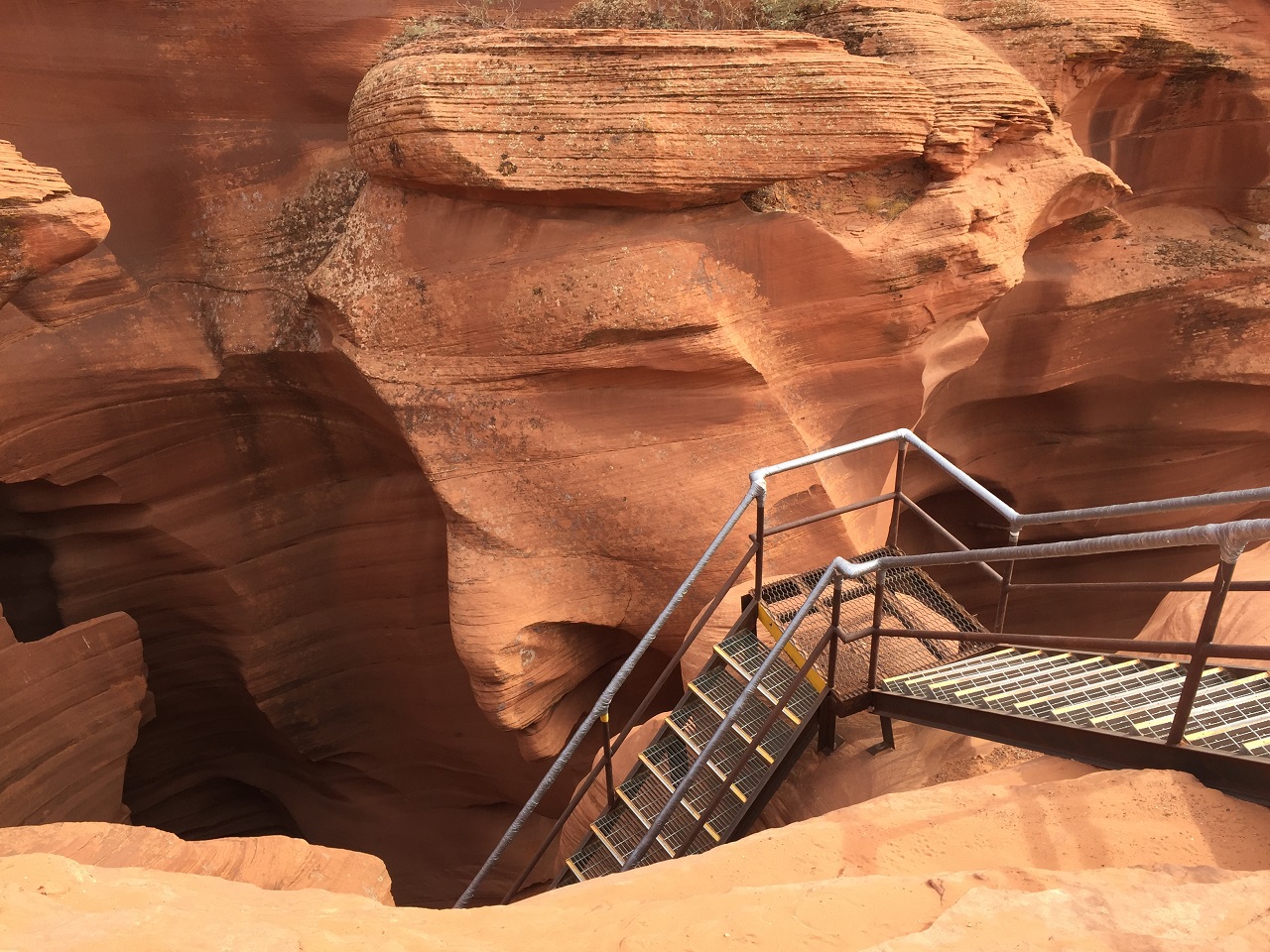 Visiting Lower Antelope Canyon with Ken’s Tours was the original and only tour I had booked prior to arrival in town but I was easily able to shift the morning visit and delay my drive to Zion National Park in order to experience the adventure of the Lower Antelope Canyon. This part of the slot canyon is on an Indian Reservation so there is a fee for the tour and a cash fee for reservation access. Lucky for me the tours leave every twenty minutes and our group was only five people and a guide. The more adventurous tour involves climbing ladders, stairs and narrow spaces for a different view of the slot canyon. I was really happy that I did the Upper and now the Lower Antelope Canyon to get a sense of the similarities and differences.