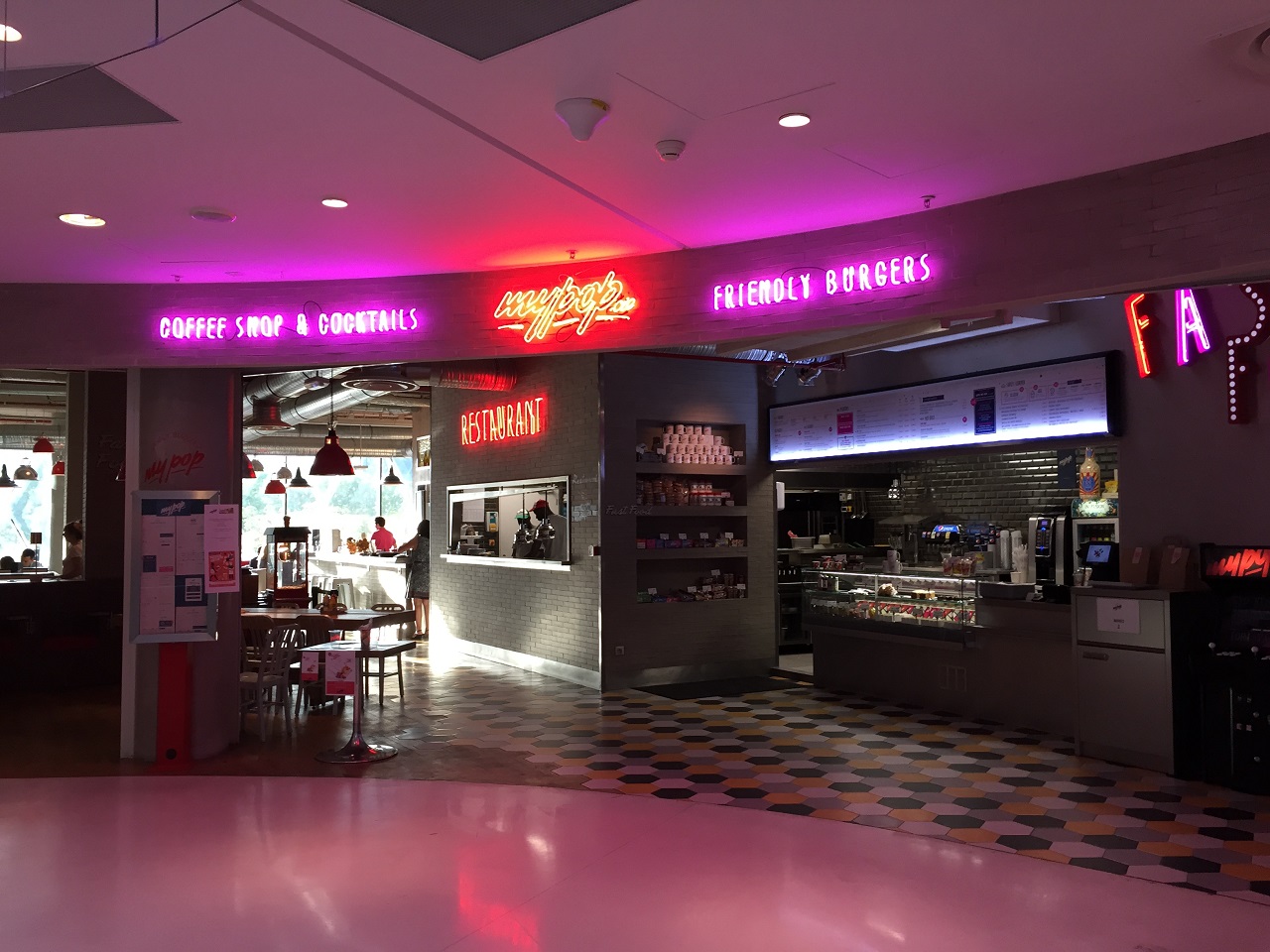 With my injured foot, I walked across the street from my hotel, Platine Hotel, to the Beaugrenelle Mall and while Chipolte was tempting, I rode the escalators up passing each floor of food and the M&S. I settled at the top at the My Pop, a contemporary update on the classic American diner.