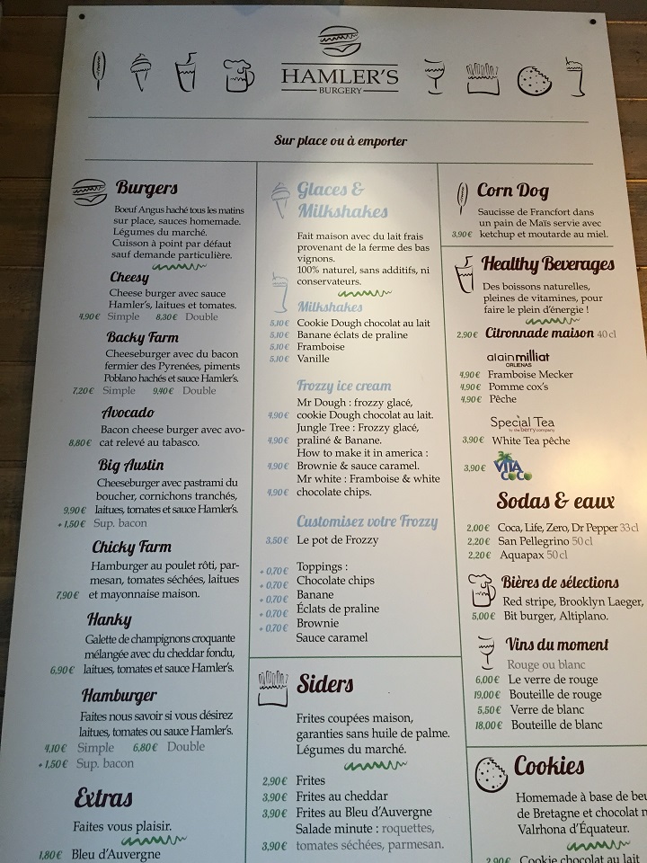 In search of dinner, I spied a shop named Hamler’s Burgery, that reminded me of Shake Shack. Staying in Paris for a week, this was my second burger. With the menu on the side wall, it was easy to order and add a glass of wine (it’s Paris, wine is essential). I wanted something that wasn’t expensive, seemed quick and looked good – a place where I could happily eat alone without issue.