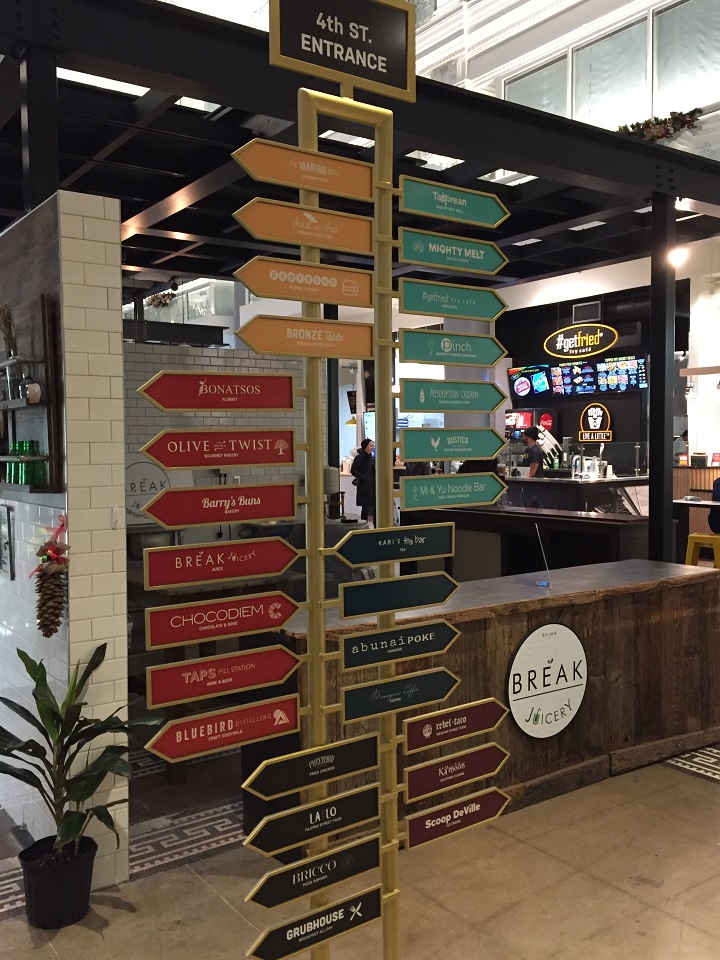 I entered from 4th Street (the more popular entrance is on 5th street across from Independence Hall Park) and was met with the directory pointing to Bourse food vendors right and left. With the various food vendors in the food hall at the Bourse, I think you can satisfy your fast casual food needs and those of your family, including the picky ones!
