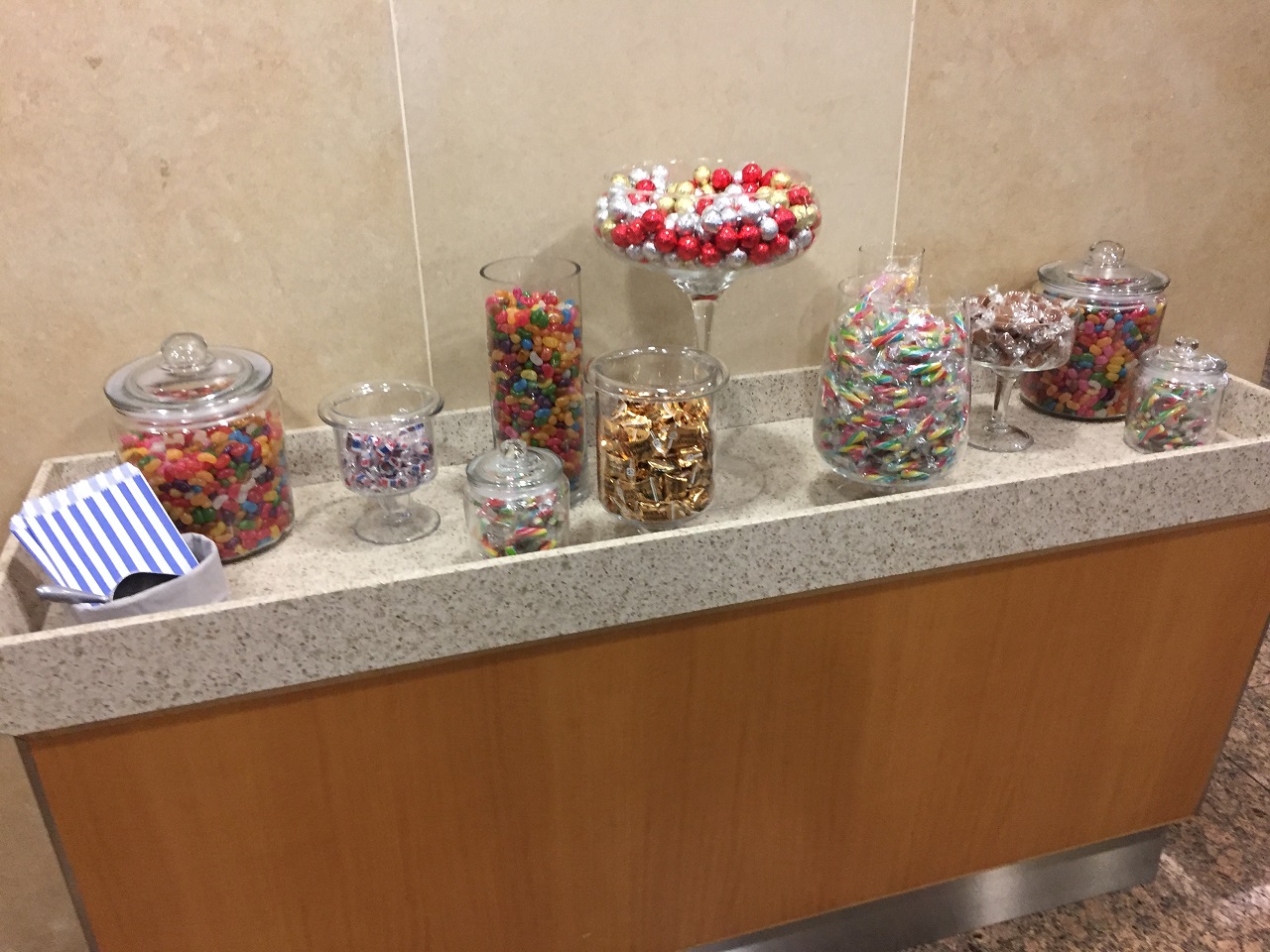 Given that I needed to go to gate early for additional security (ugh SSSS), I left the lounge before they told me to leave but not before filling a bag full of candy. I was surprised that the trek to Gate 28 was really, really long even with moving sidewalks so wear good shoes and leave early to get to the gate.