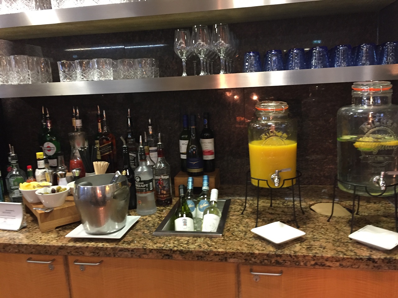 The drinks area was self-serve and I liked both the bottle water choices – one was UK local and the other was Evian. Soft drinks, beer and liquor were also available. Again similar to the champagne, I can’t say it was the best wine or premium liquor but hey it’s free! There needs to be some barometer I guess, I think I expected more as this is the “International First Class” lounge.