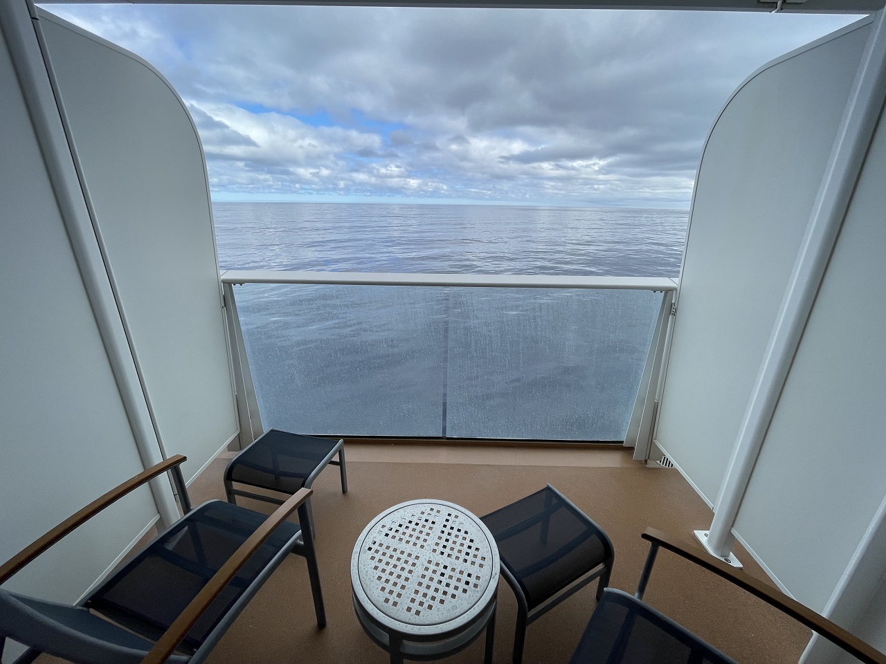 I booked a “guaranteed balcony” which is usually the lowest priced category as you don’t pick your cabin location, the cruise line does. In all past gambles I’ve ended up in a forward cabin and none were obstructed views so for me the risk was worth the savings. For my Ovation of the Seas guaranteed balcony 6552 it was forward, near the elevator bank which I was afraid of noise but with the exception of a few children running one day, it was quiet.