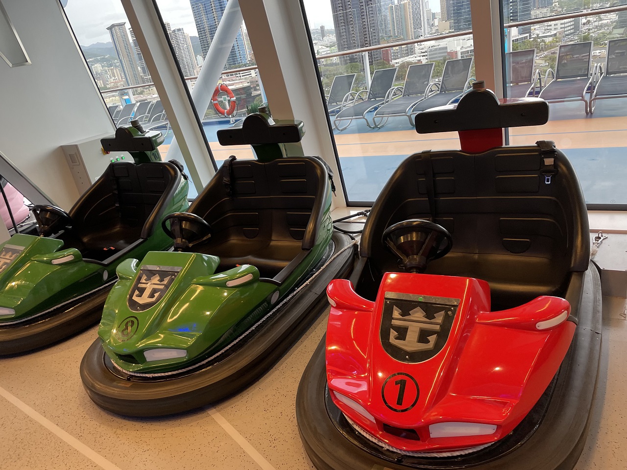 Areas of adventure are in the back of the ship with the popular Flow Rider surfing experience, Rock climbing wall, I Fly skydiving experience and North Star observation pod. All of these activities are free but definitely need to be booked in advance, I suggest doing this on Deck 15 when you first board. Key cardholders have special times blocked but reservations are still required. The activities deck also had a multi-purpose area that was used for basketball, bumper cars (UK dodge-ems) and a variety of other sports. Note the times in the daily planner on your app to make sure you don’t miss out on your favorite sport.