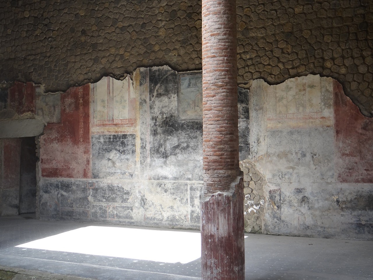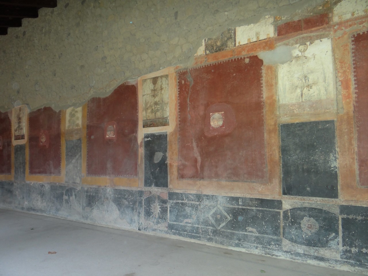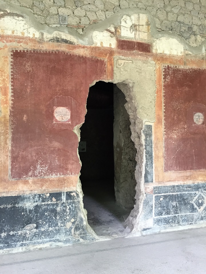 When we pulled into the dirt lot after passing farmers selling their crops along the road, passed the piles of trash in the streets (just like in Naples), passing real life locals, I was surprised to walk in the dirt path to find a hidden historic villa. Pompeii is definitely more famous than Herculaneum and all are more well-known than Villa San Marco where I was in Stabiae. Due to a recent documentary on local television, Marcello was surprised to see people at the site during our visit as he is used to having the place to himself. The guard greeted him as an old friend. The villa has many preserved pieces and the colors and style are reminiscent of Pompeii or the homes in Herculaneum. You can see the walls torn apart as the valuable art has been removed over the years – a few to museums, a few lost. I’m always fascinated by this part of history, how well it has been preserved while modern life grows up all around it. The villa is pretty massive for what was the time period with internal and external courtyards, gardens and even a pool!