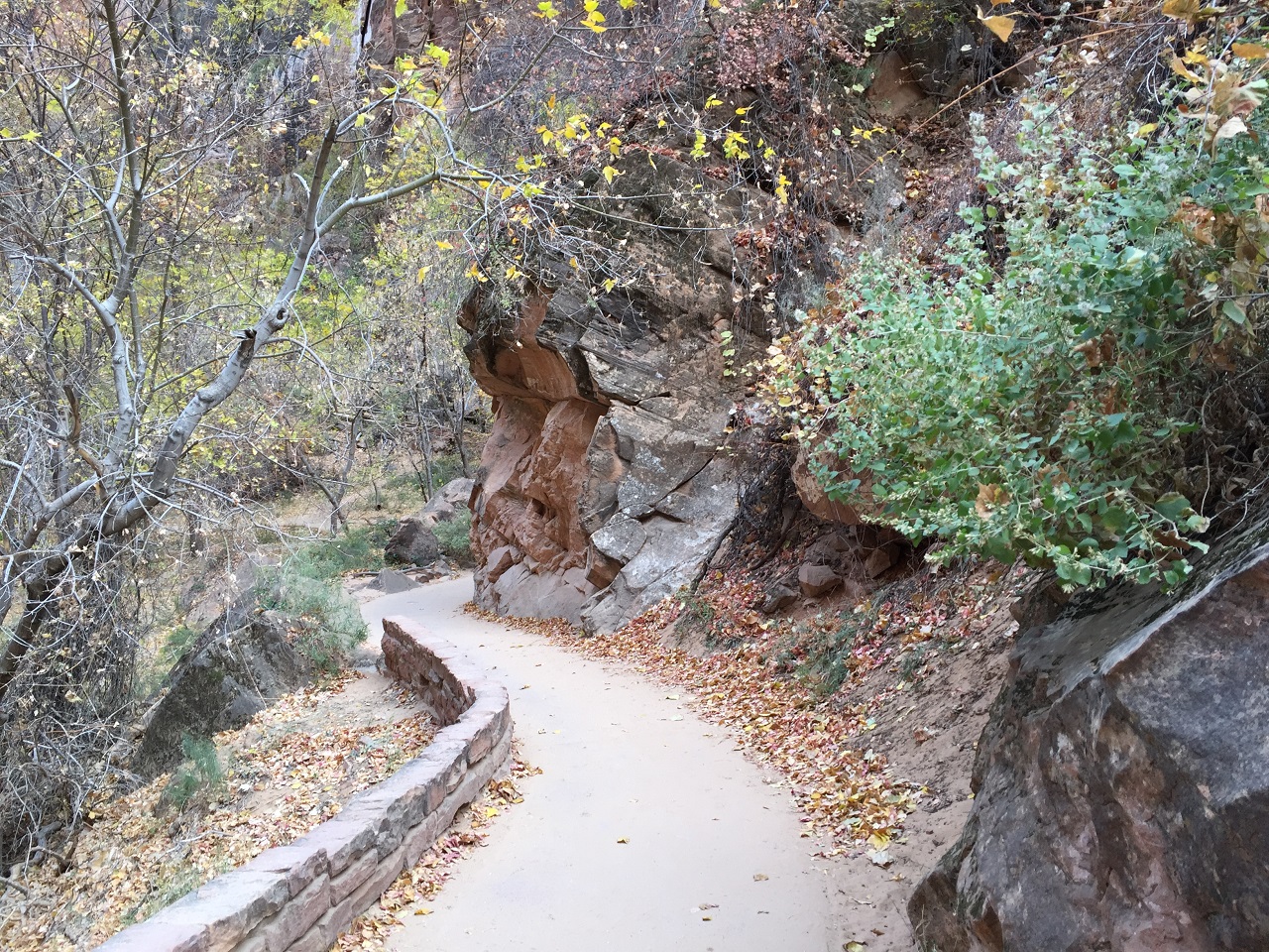 The paved path has a slight elevation at parts and allows you to go off the path down a few stairs to get closer to the waters of the Virgin River if you choose. As it was early morning in November, I had the path to myself for the most part and was able to stop frequently to take photos. I did see a few people – some friendly “good morning”, some not so much. The air was crisp and cool, the views simply stunning and the only noise was the rush of the river. You really can’t ask for more than that on a morning walk.