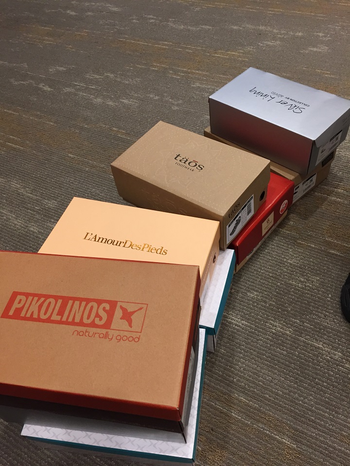 Taos and Pikolinos had tables of really cute shoes in a variety of styles – sandals, flats, heels and even an oxford.