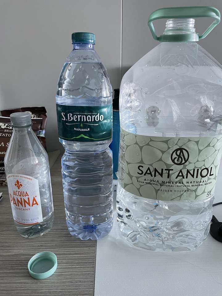 Celebrity and Royal Caribbean are owned by the same corporation so Celebrity’s water carry on policy is similar to Royal – you need to carry it on by yourself with limits by cabin. As I was sailing solo from Barcelona to Rome (summer 2023) on a port intensive itinerary, I opted to carry on two three-gallon jugs of water which I bought from the supermarket for less than two euros. I also brought my refillable water bottle along with an empty Panna water bottle. I would pour the water from the large jug into the smaller bottles. I also bought water in port by finding supermarkets selling water for thirty to fifty cents.