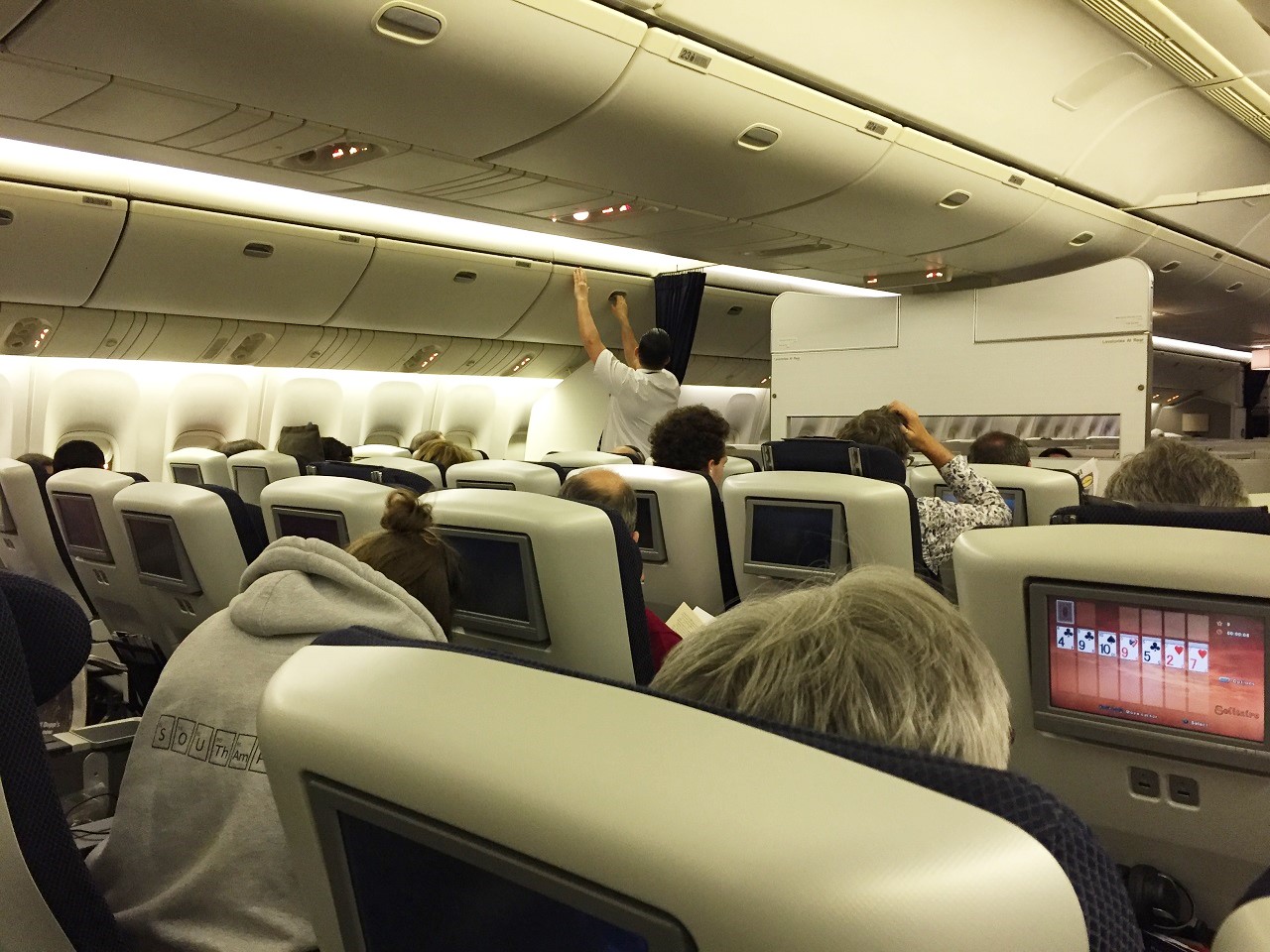 The flight attendant played a cruel joke on me after I asked “is the seat next to me still empty?” He said there were less than ten seats open on the flight. Before takeoff, he came by after I got sorted and said “Ma’am, we need to move a woman and her crying baby into this seat” and then laughed at my facial expression (obviously my poker face was cracking as it neared 11 pm). I replied “if that was the case, you’d hear me cry until you moved me forward to business or first class”