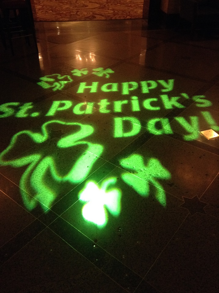 If you forgot your green outfit, beads, silly hat, glasses, sparkly vest or “kiss me I’m Irish button”, don’t worry Walgreen’s (which seem to be on every corner downtown) and other stores I walked into had something to make you Irish, even if it was selling you Jameson’s Irish Whiskey! Vendors were along the parade route selling hats, beads and other green accessory to make you honorary Irish for the day. Just in case you forgot you are in the city for St. Patrick’s Day, restaurants changed the light bulbs to green, buildings were lit in green and even the hotel had a subtle message. It was hard to escape the color green.