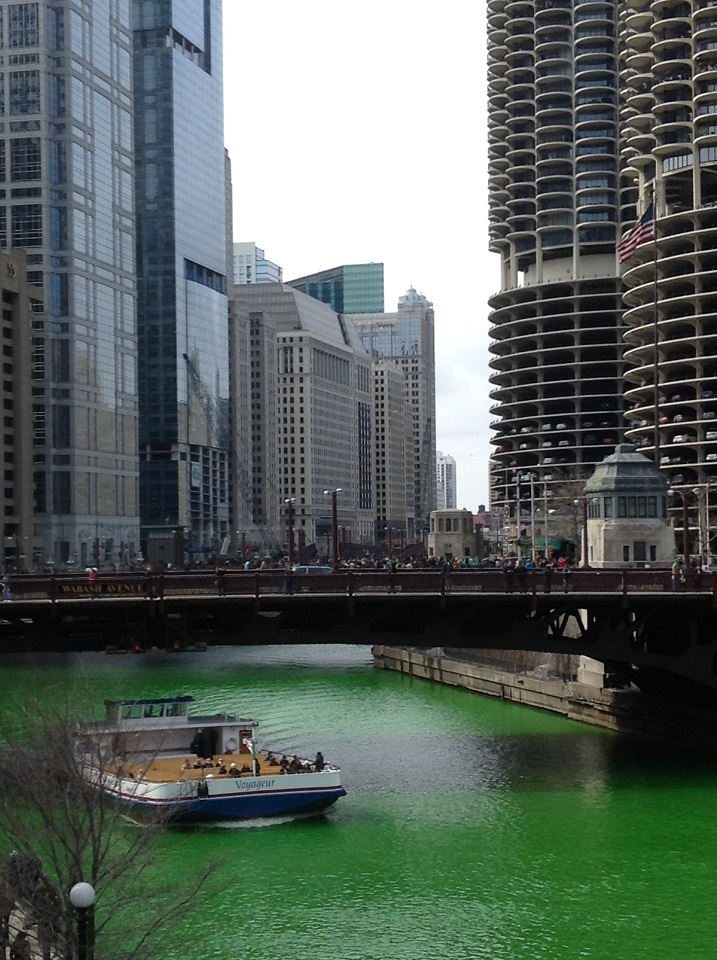 Despite all the insanity of the green river, the parade, the revelers and the outfits (some that I wished I had never seen) -it was really nice to see happy people (even if alcohol played a part). Groups of friends, families, couples and the traveling singleton (me) were enjoying the bright, sunny day walking around Chicago. So while Kermit the Frog may lament “it ain’t easy being green”, in Chicago for St. Patrick’s day, it’s super easy and fun being green (and temporary Irish).