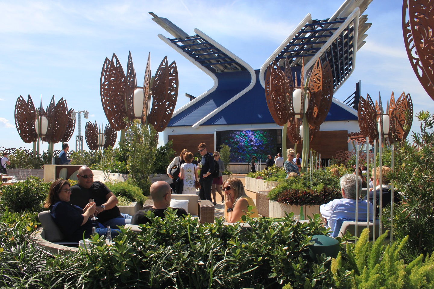Rooftop Garden on Celebrity Edge is relaxing place to meet and drink on the ship