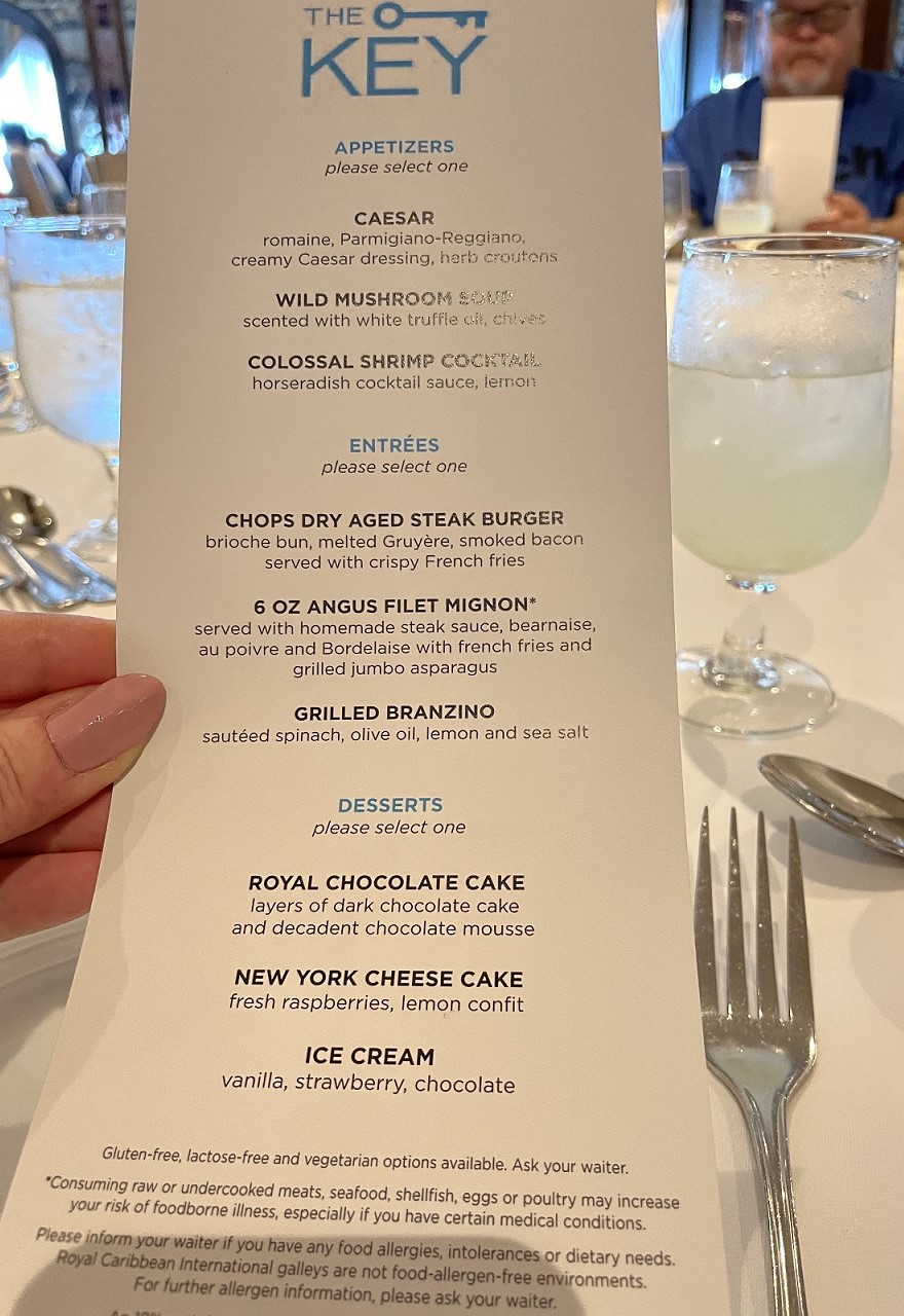 - Discount for Specialty Restaurants – If I had incentive to dine at a specialty restaurant with The Key, I would have entertained the idea of the additional cost. I did book a specialty lunch at CHOPS Steakhouse when it was on a slight discount online but once onboard there are no discounted specialty options.