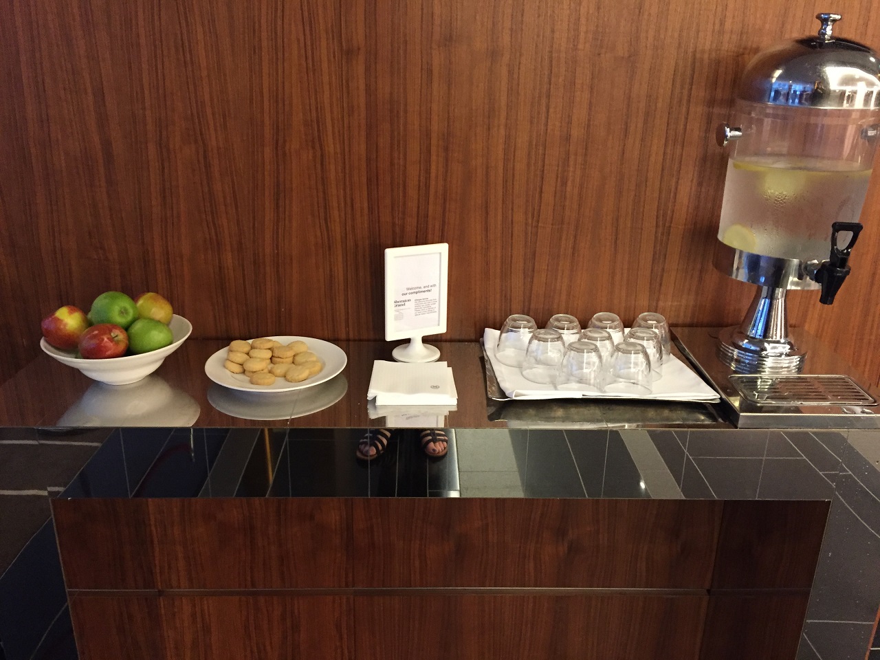 The décor and layout was quite nice as the Sheratons are upping their game in my opinion, a long way away from the boring beige that I tend to associate with a Sheraton. The lobby had the Link Business Center, a television seating area, an open seating area, a lovely art collection and a private whisky tasting area roped off that day for a special tour group.