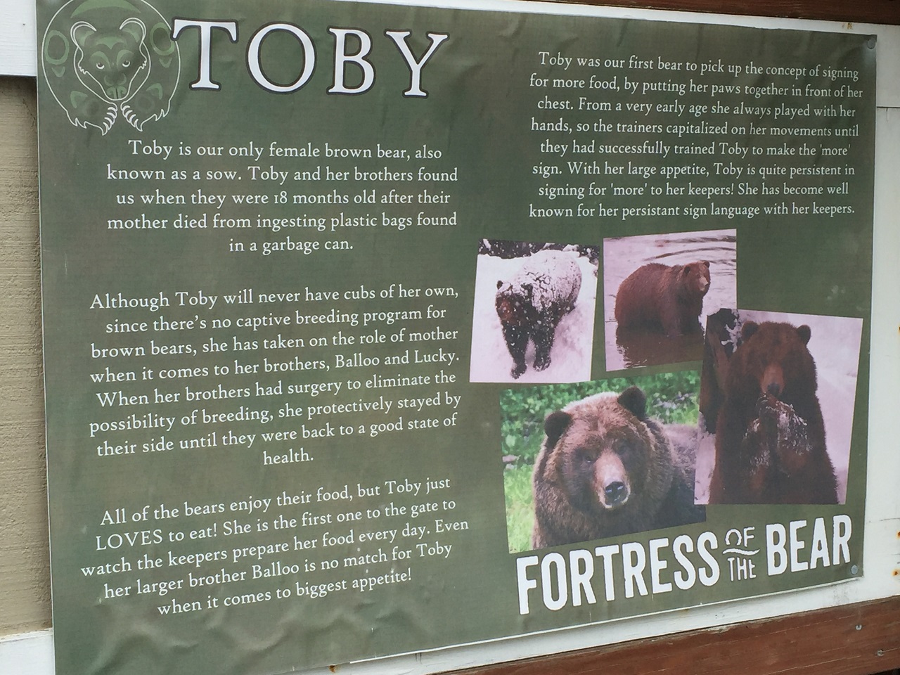 The website has more information about their resident group of siblings – the signs at the site told a bit more about each resident bear.