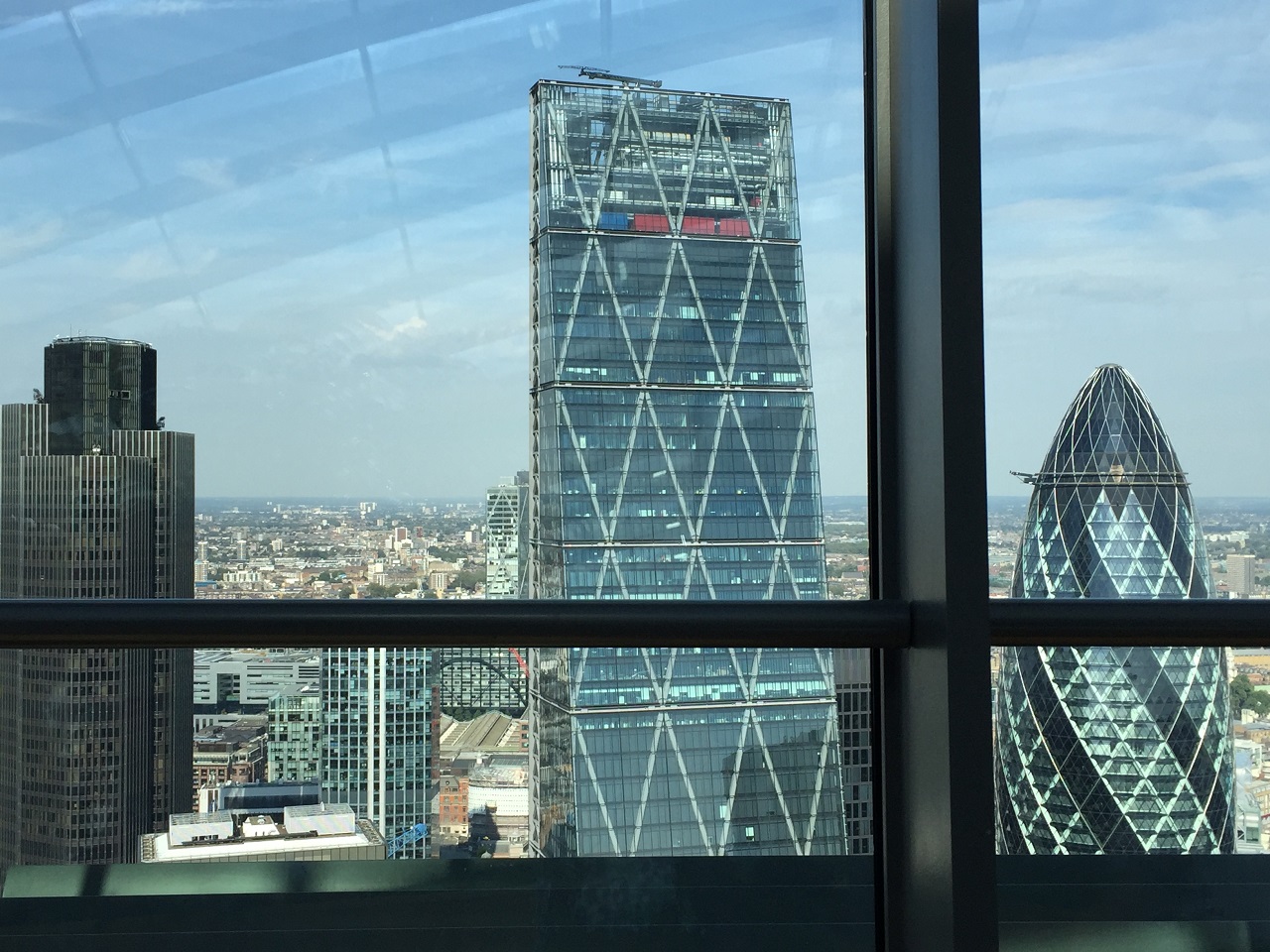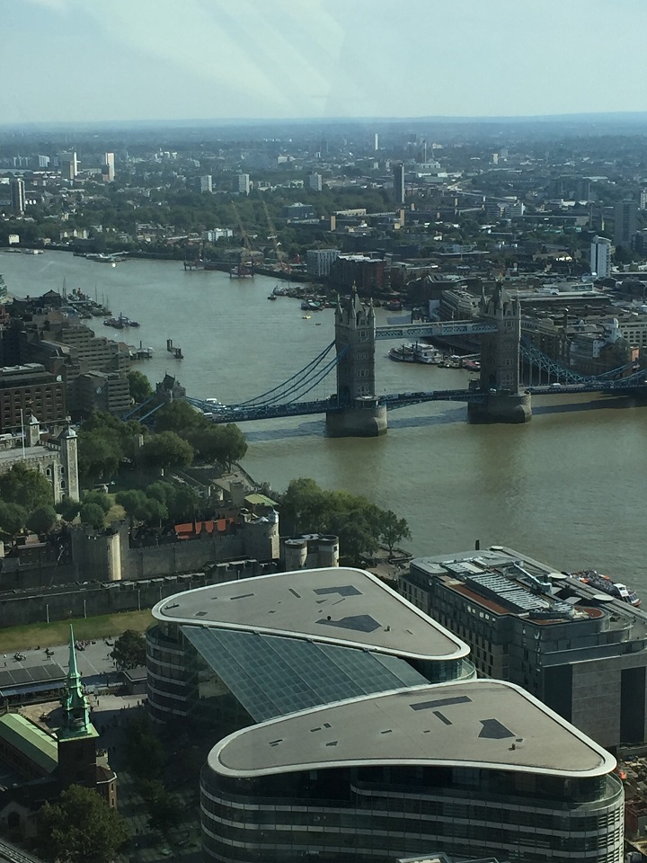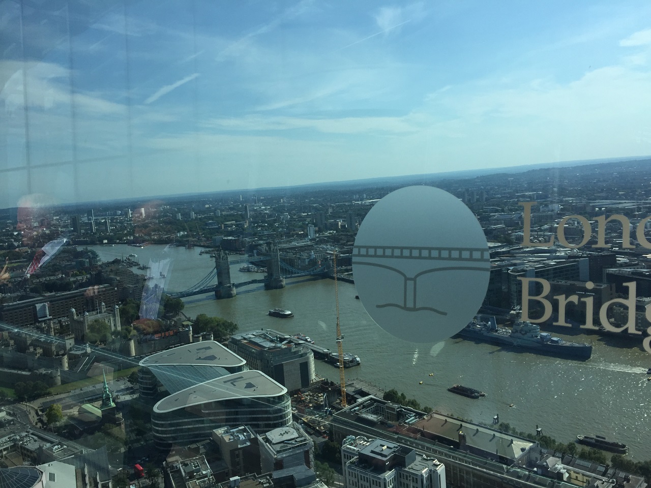 The day of my visit was bright sun, hazy and humid (the hottest September day breaking records). The interior windows are tinted as you can see from the photos and have markers on the windows for the viewing descriptions. The views are 360 degrees which is fabulous although your camera may have issues with the tinting. As you can see I took a photo of Tower Bridge not of London Bridge which was in front of the marker.