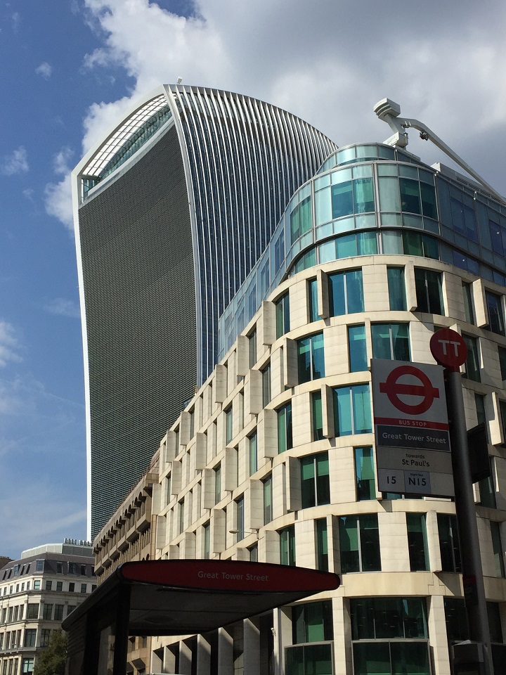 Londoners are quite funny as they name the new buildings in the city based on their shapes – there’s the Gherkin, Cheese Grater, Shard and the Walkie Talkie. I’m not sure of the proper names of the buildings or even their addresses but everyone seems to know what you are talking about if you say the names in the city’s financial district. When all of these skyscraper (for London anyway) buildings were built, only the Shard had an observation area (for a price). For other views of London, you can ride the London Eye, climb the stairs at St. Paul’s (not that high) or the free rooftop at New Change Mall on Cheapside. Now you have Sky Garden. The aptly named Sky Garden London is just that – a green space in the sky located at the top of the Walkie Talkie building. Unlike the Shard and London Eye, the Sky Garden London is FREE to visit. There are, of course, a few hoops to jump to get up in the sky but let’s look inside first.