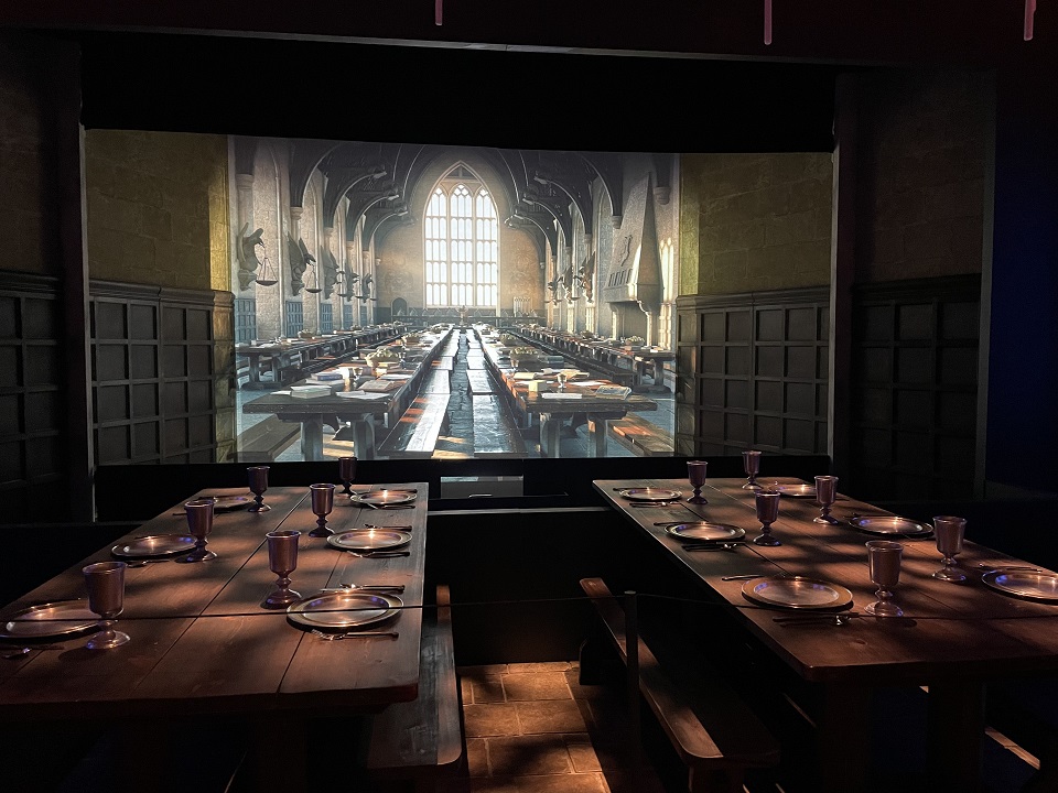 At the entrance of the exhibit, groups are limited in number to begin the journey. You will be led into a room and asked to tap your wristband on either the right or left of the room. You’ll then hear the familiar music of Harry Potter and see the train journey to Hogwarts with your name floating on the screen. This is just one of many personalized features of the journey through the exhibition. Once that is done, you are free to enter the exhibit and follow the lines or go as you wish through the various rooms (there are over 20 rooms set up, including a smaller version of the Great Hall, Hagrid’s Hut, Hogwarts Houses, the Ministry of Magic and more).