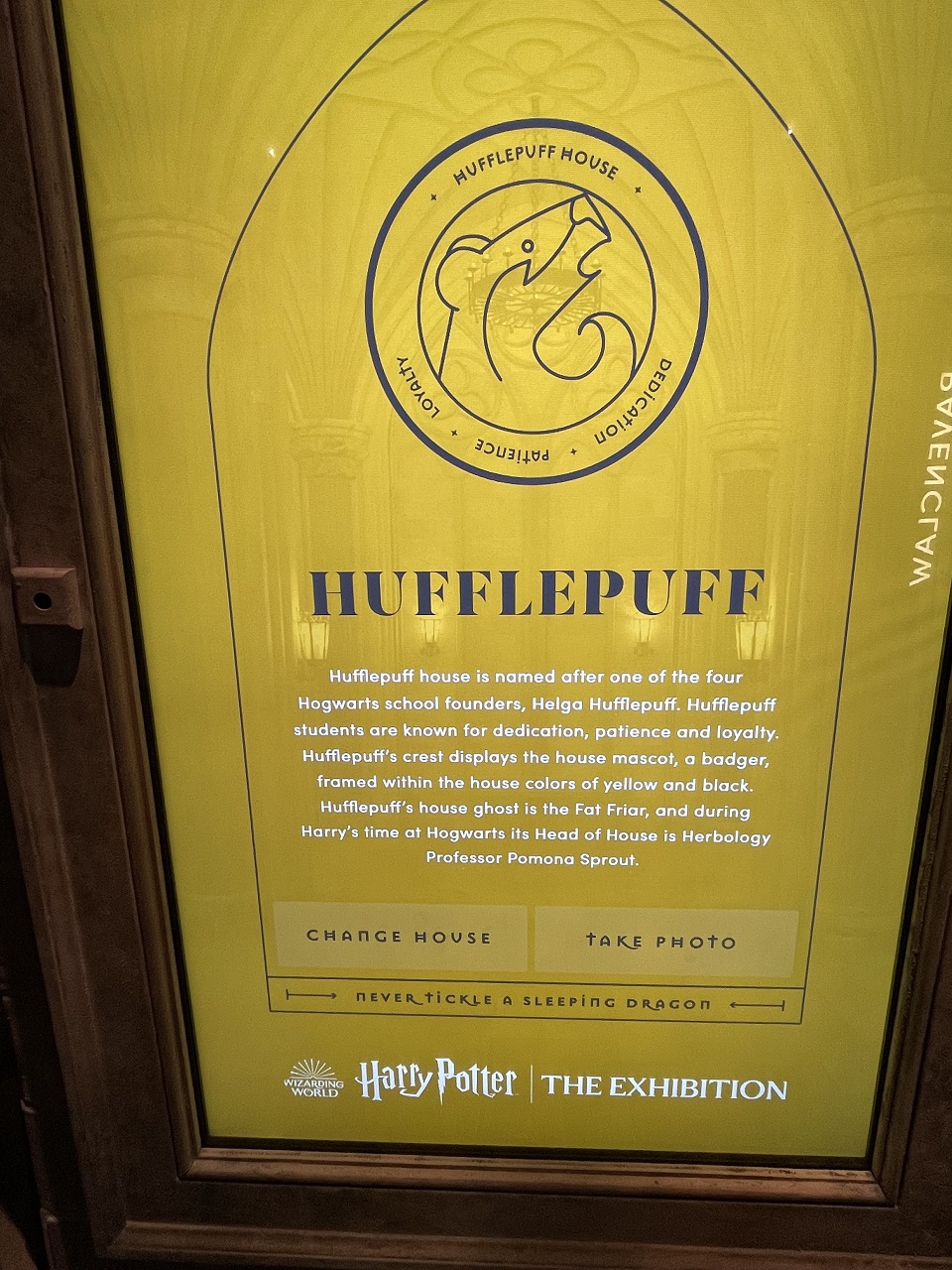 You can choose to put in real data or false data, an email will be sent after your visit if you use real email information. The name you choose to assign to your wristband will follow you in the exhibition to the interactive displays. Your tag is aligned to the Hogwarts house you’ve chosen so you can earn points as you play along. If you have a big group, know that it will take time for each person to play some of the interactive games to earn points.