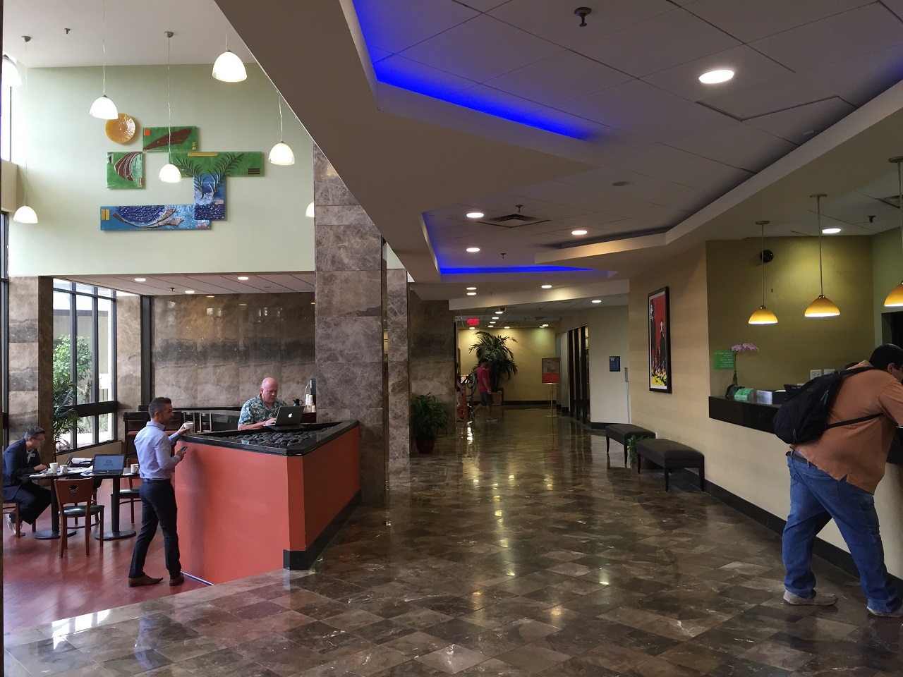The old building façade didn’t do much to allay my concerns however, my initial fear of the hotel quickly dissipated when I saw the sign that the 263 room hotel had completed its sleeping room renovations (yeah!). Undergoing an $8 million renovation, the rooms and event spaces were complete – only the lobby, gym (currently closed), restaurant, and elevators are left to update. Wi-Fi is complimentary. When five busses of sad cruise passengers arrive to overwhelm your hotel, the front desk staff, led by Andres, a manager, were not only friendly but super-efficient to check us in quickly as we were quite hungry. No credit card was needed as the Fathom Cruise line was paying the bills, so just a quick photo ID check to sort us out and we were off to the 5th floor.