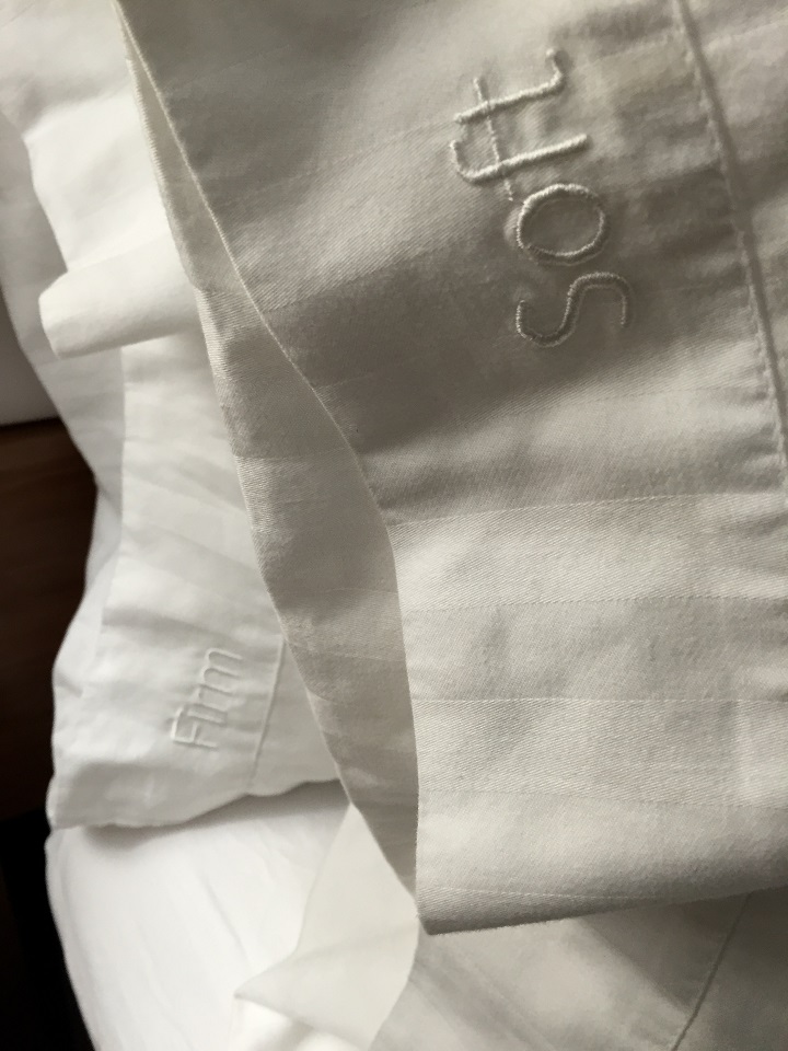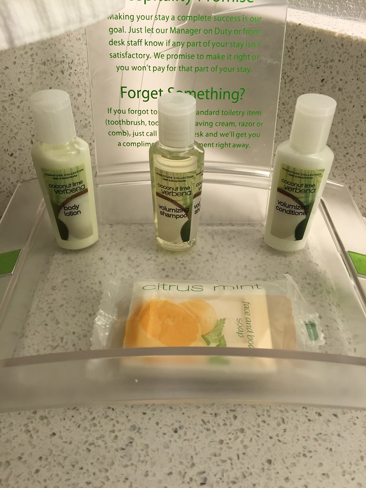 The bed was comfortable with the pillow menu of soft and firm noted on the covers for you to choose which ones are best for you. Shutting the room darkening drapes, I quickly fell asleep after the day’s drama. As someone from the city, I’m used to street traffic/beeping noises – in this case, noise seemed minimal to me.