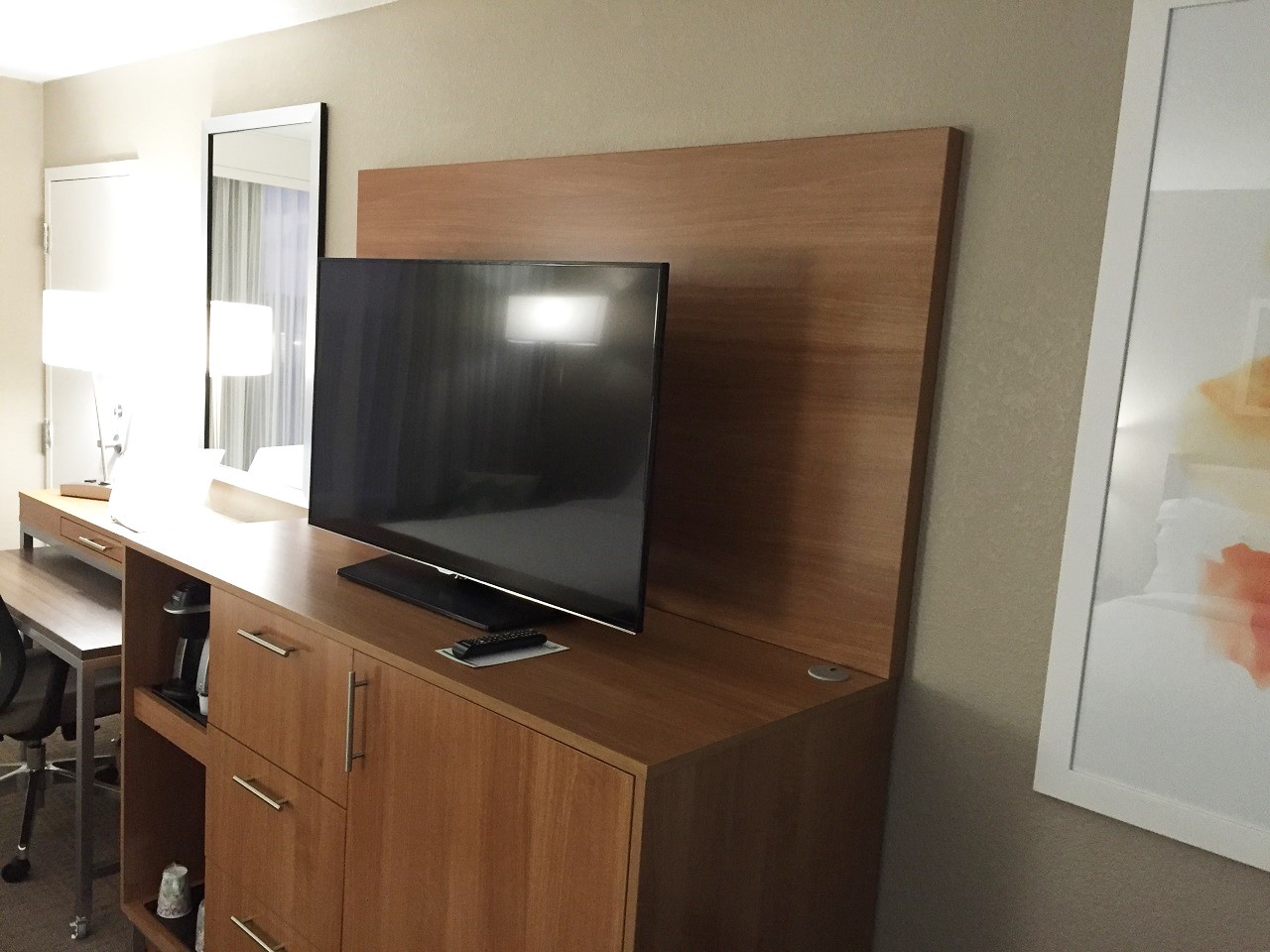 The television was a bit fuzzy and needed a tune up as the settings (or cable) seemed a bit off in picture size and color but it wasn’t the end of the world. Just noticeable. The alarm in the adjoining (empty) room began buzzing at 6:30 a.m. so I reported that to the front desk to shut off. A Keurig coffee maker is provided in room.