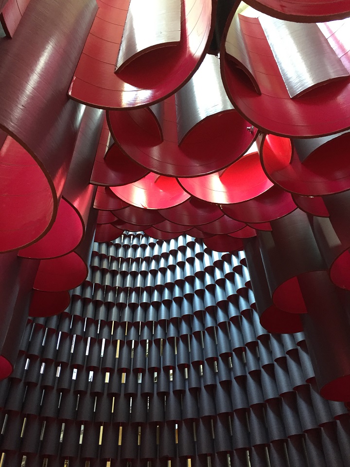 But the art wasn’t over yet! Our next stop was the National Building Museum (our feet decided it was time to call an Uber) which was hosting “The Hive”, a building block of paper rolls that was more than I could ever think to do. My art skill ends at stick figures and pyramids of Legos. Walking through the giant structure in the lobby of the museum, the colors were highlighted from the sunlight pouring in above. A smaller hive inside invited kids of all ages to make music.