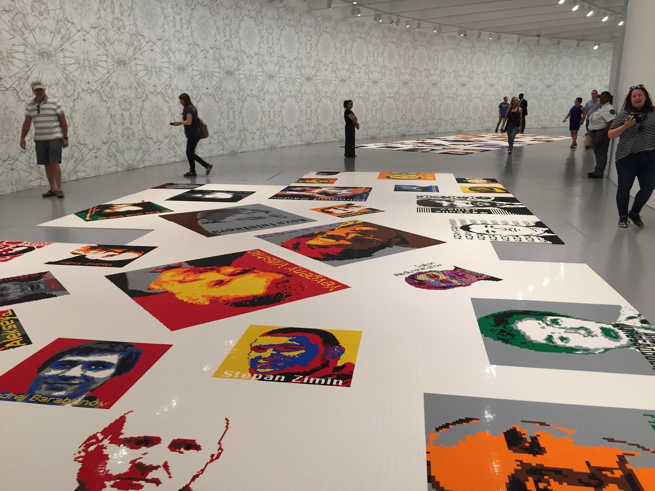 After wishing for world peace, lottery wins and some candy (a lot of walking, we were hungry), we entered the Hirshhorn and rode the escalator up one floor to begin our journey through “Trace”. The walls were adorned with a special wallpaper that had symbols of imprisonment when you looked closer. On the floor over a few areas were portraits of political dissidents around the world created with Legos. Yes, Legos, over one million Legos to create the 176 portraits. Up close to the edge you couldn’t see the portraits as well as you did with a step back. This powerful art lends itself to deep conversations about passion, conviction and politics and how far are you willing to go. It’s no coincidence that you are looking down at the floor, down at the portraits – it’s meant to be that way as society looks down on prisoners.