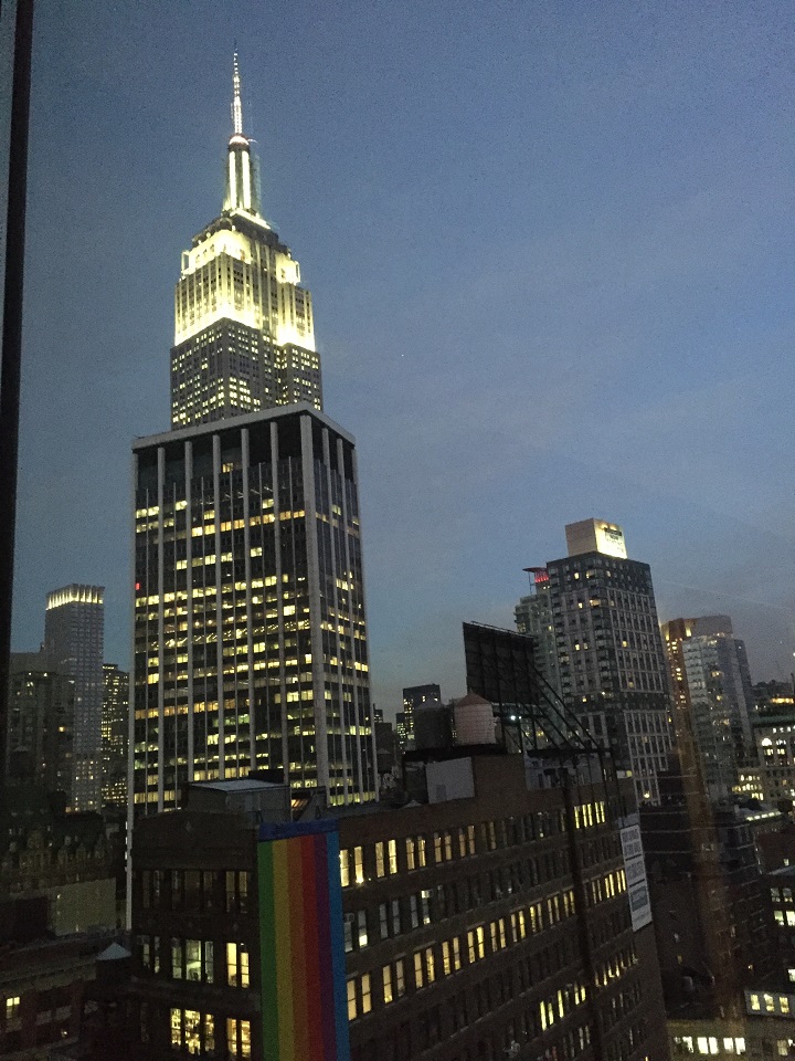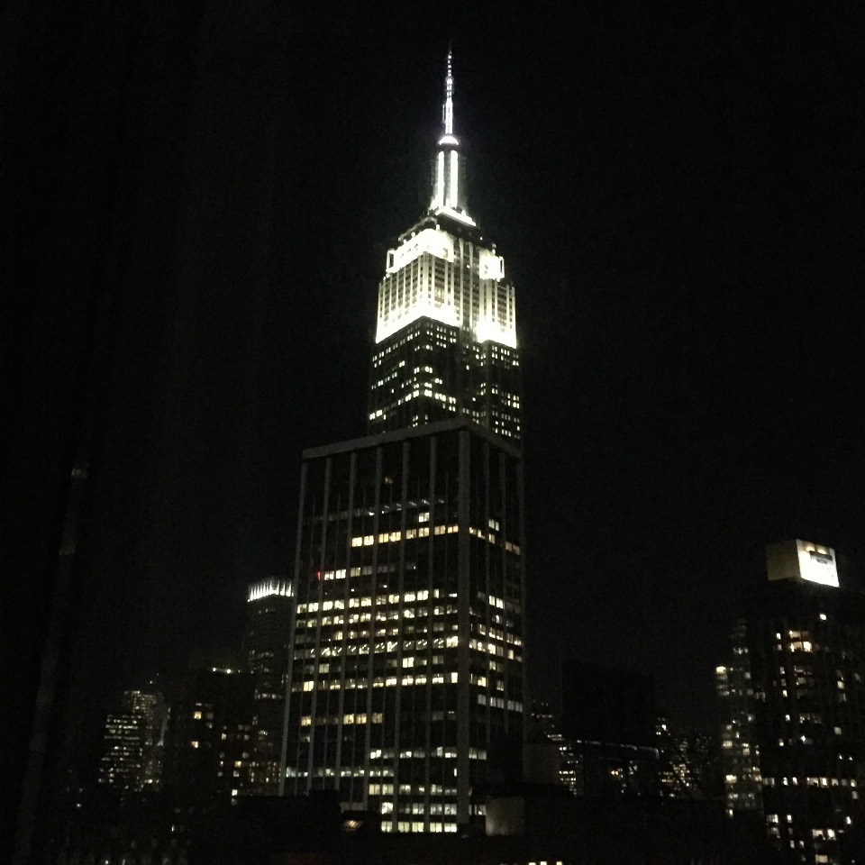 But it was the floor to ceiling windows that called to me. Remember I get the worst views (or no view at all) and I could see through the sheers that my crappy view streak was coming to an end. I drew back the curtains and sheers to see the Empire State Building which was really cool. I already liked the new, crisp, modern hotel design and layout and here I had a view too!