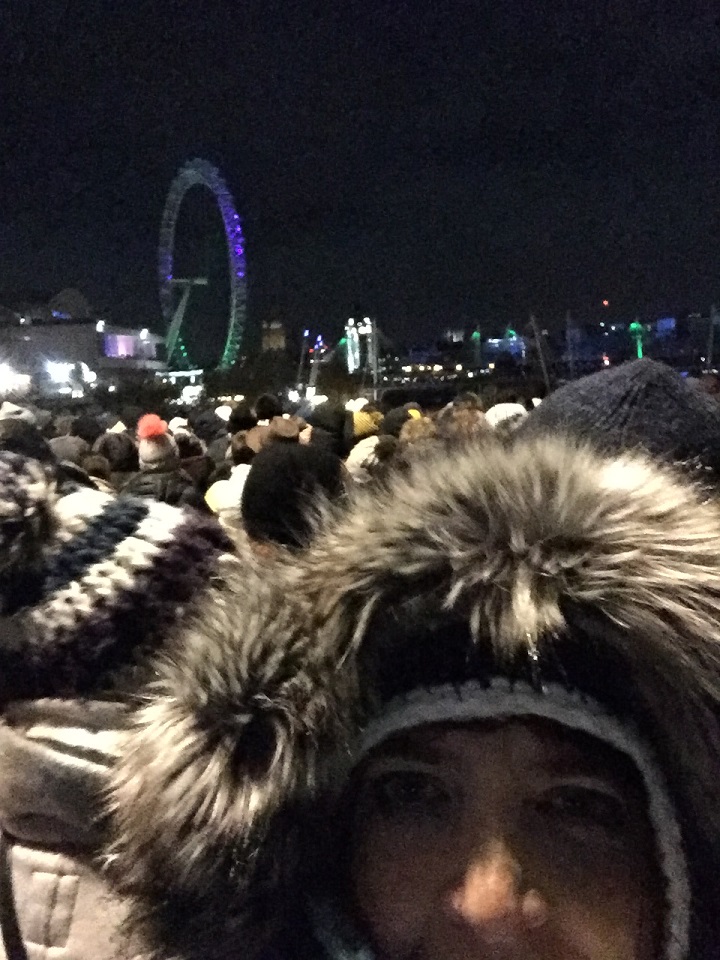 Watching London Fireworks from Waterloo Bridge for New Year’s