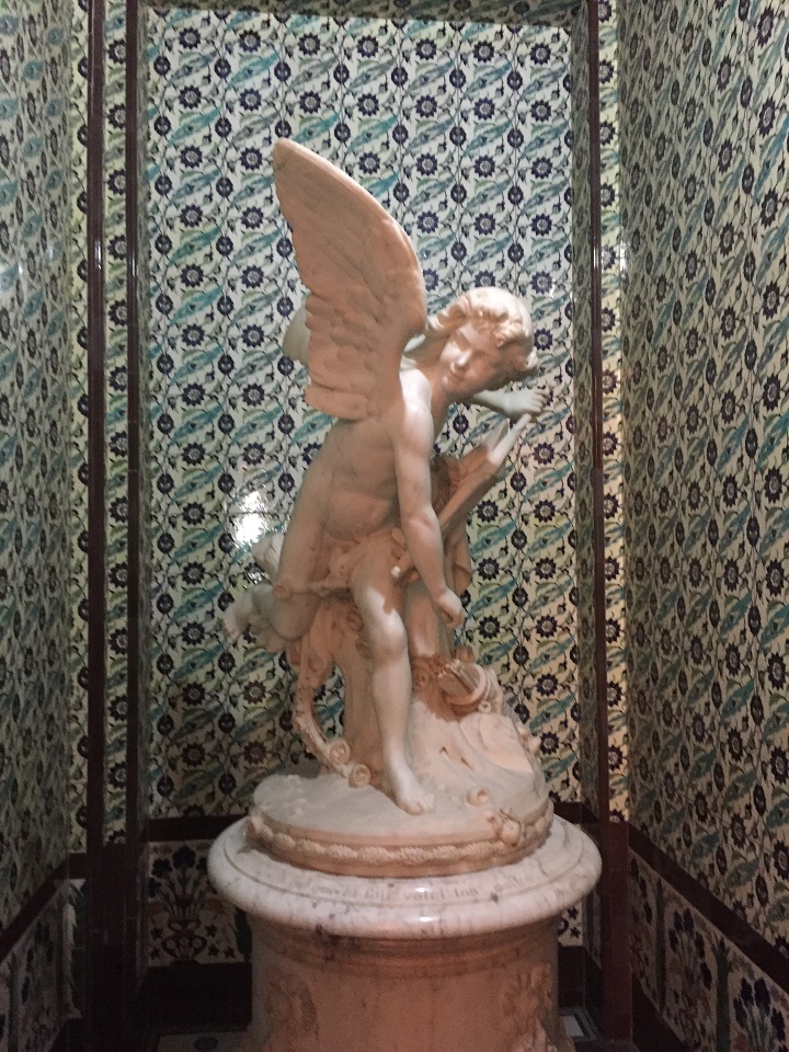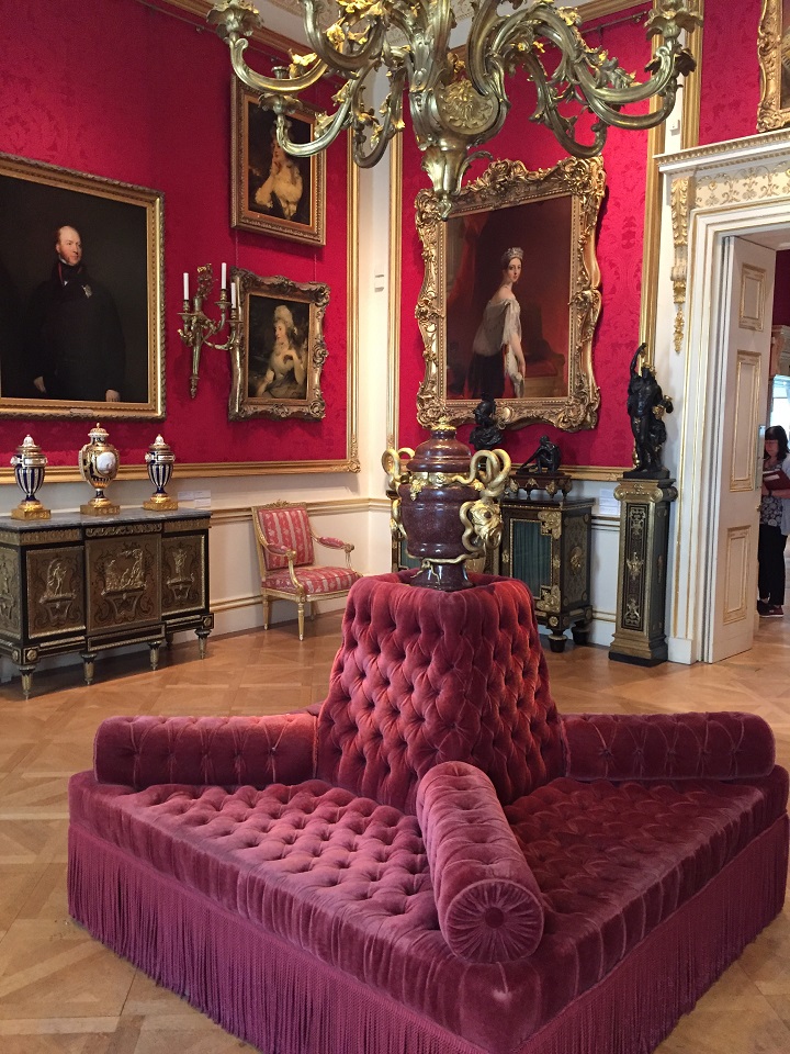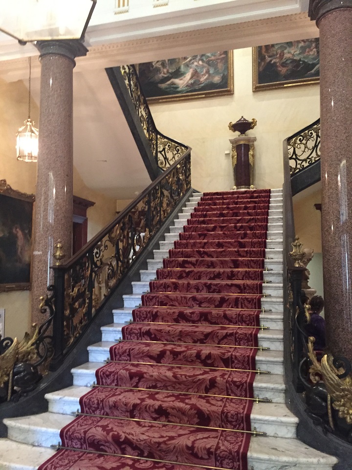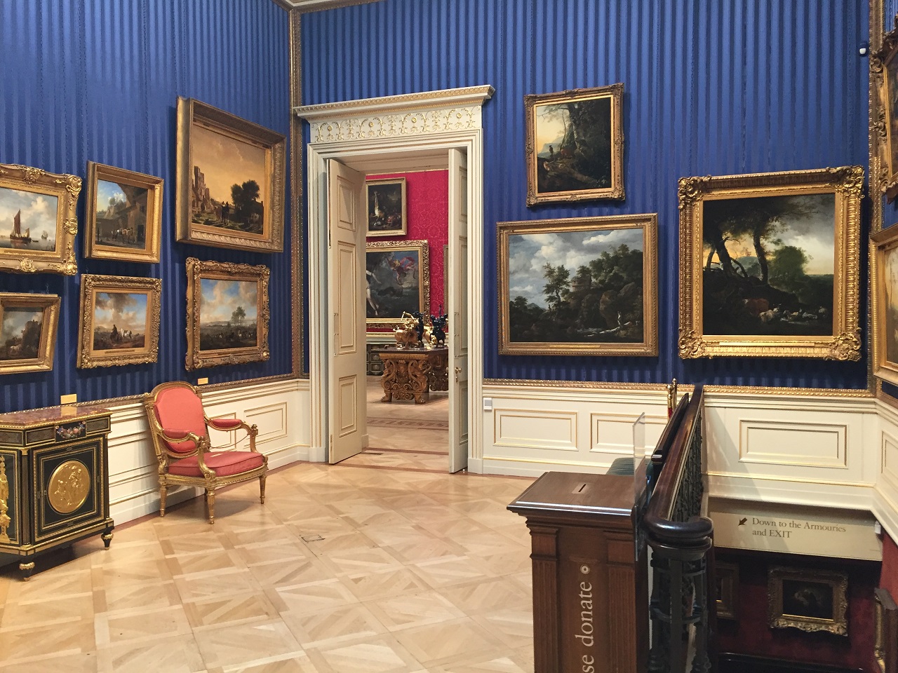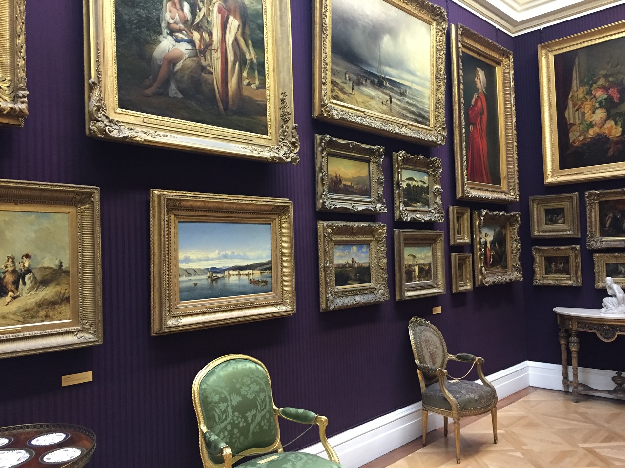 I knew when my tour around the collection was complete when I ended up in the original room of blue wallpaper. In some ways, I was reminded of how The Barnes Collection in Philadelphia is curated with many art pieces on the walls causing the visitor to linger and try to find a common thread/theme in the art. One wall had ten or more paintings above a chair or table – it was spectacular. Another wall was full of women. Another wall had hunting and animal paintings. So there were some themes.